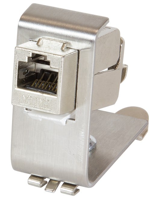 Adattatore per modulo Keystone per guida DIN 35mmPer prese RJ45 e accoppiatori con montaggio ad incastro (14x16 mm)Solida staffa in metalloAcciaio inox 1,5 mm