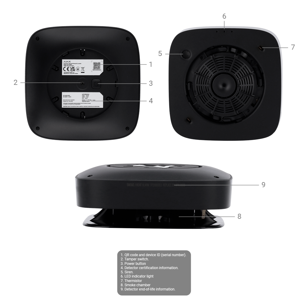 Rilevatore di fumo e termovelocimetricoBatterie integrateSenza fili 868 MHz JewellerSirena 85 dB integrataConsente il funzionamento autonomoCertificato EN 14604