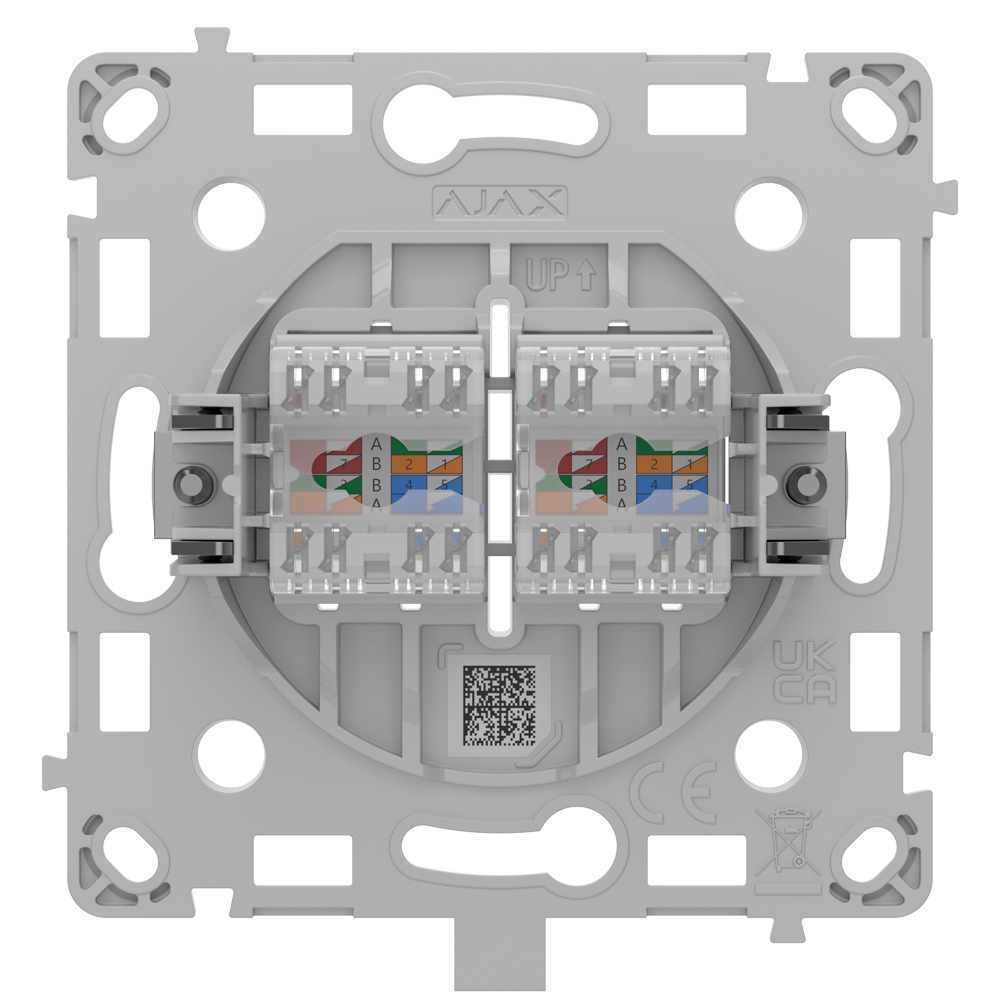 Ajax Outlet (LAN) è una presa Ethernet a due porte che supporta il trasferimento di dati ad alta velocità compatibile con i cavi CAT.6 e CAT.5e,, e rappresenta la soluzione ideale per lo streaming video e altri requisiti di larghezza di banda elevata. L'installazione è semplice e veloce, poiché si inserisce in una scatola di montaggio standard e non richiede modifiche al cablaggio esistente.