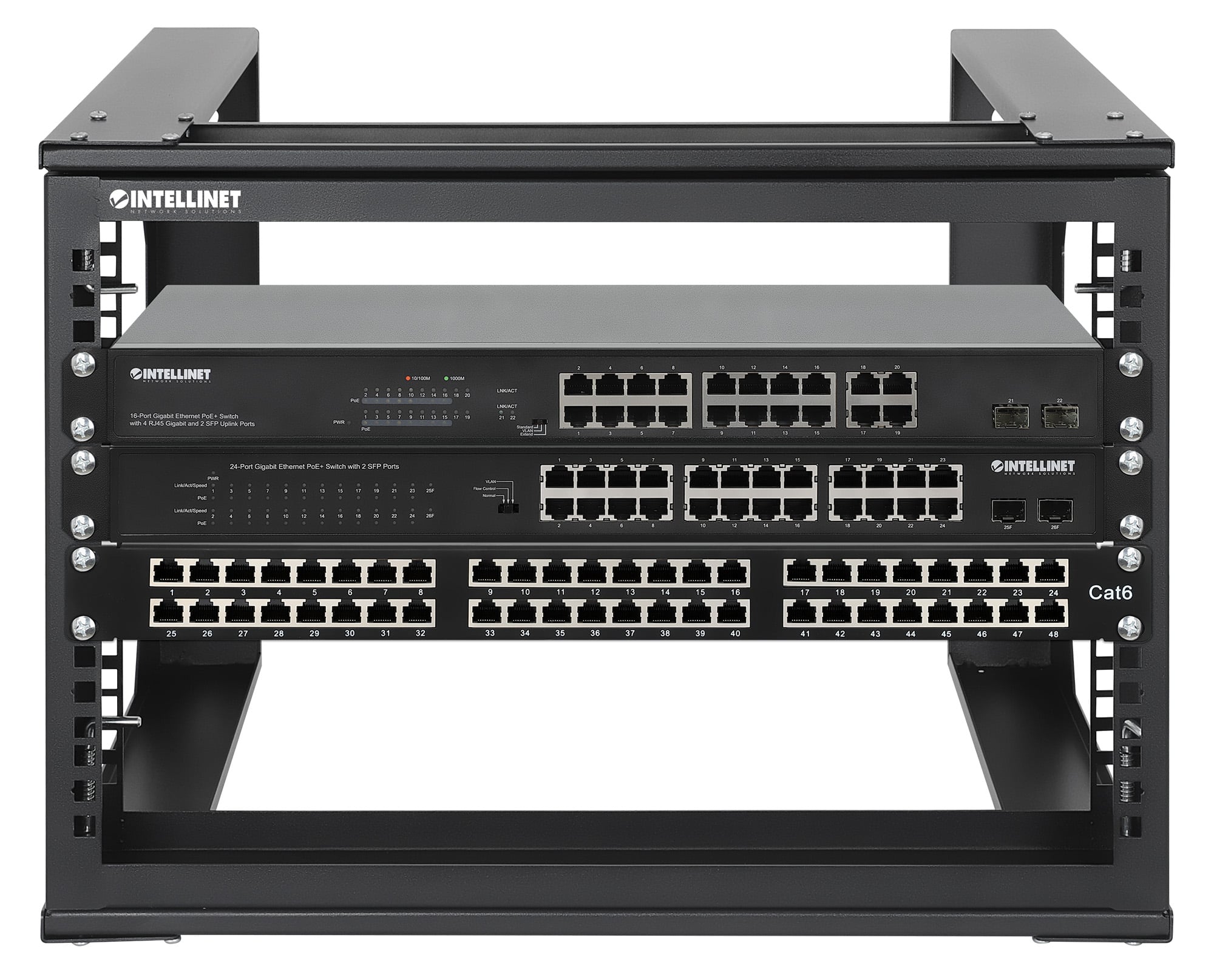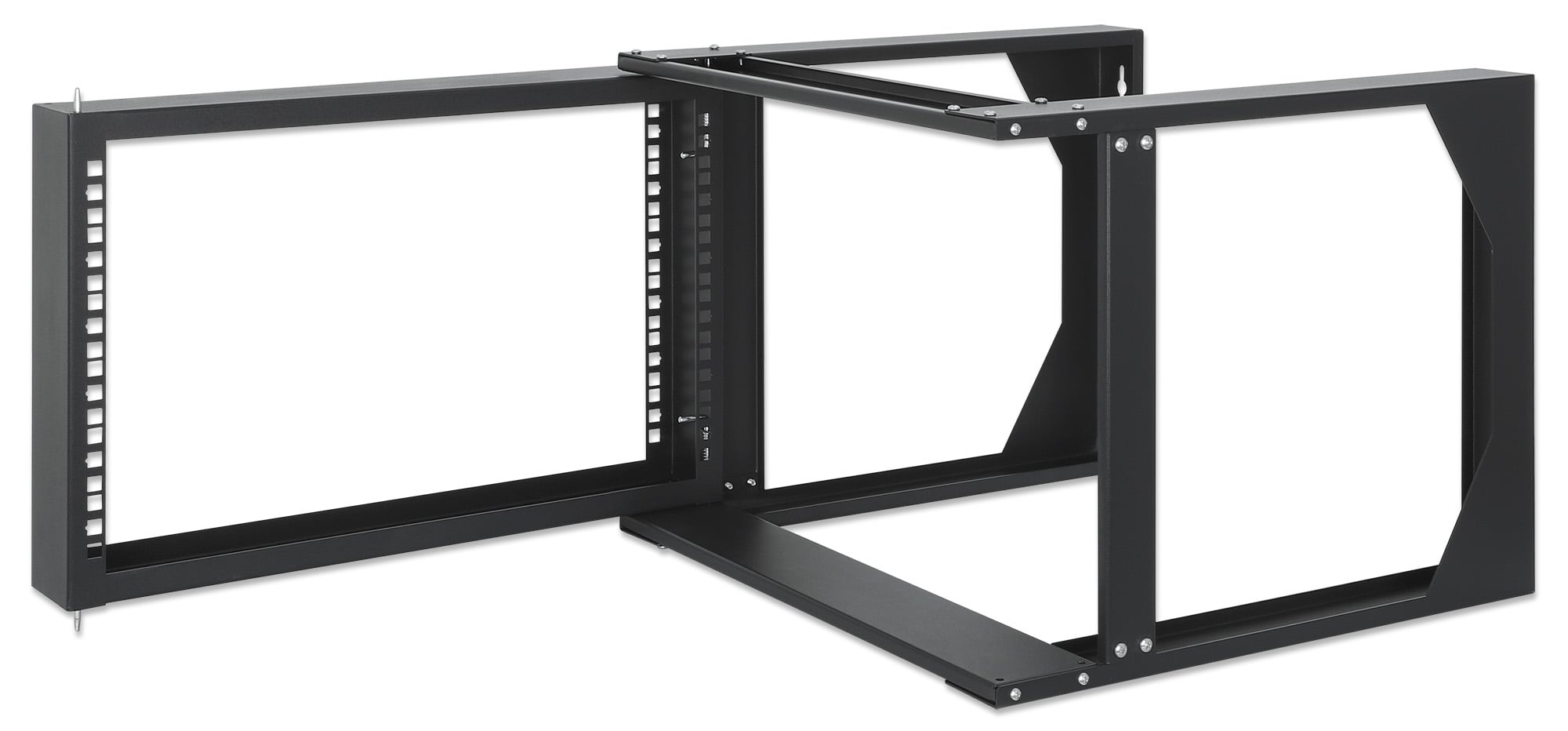 Rack 19 aperto con 2 montanti, 6 unità, flat packDesign con cerniera frontale che consente al telaio di aprirsi per un accesso ancora più facile ai pannelli; Installabile a muro per installazioni di rete con spazio a pavimento limitatoSoluzione semplice ed economica; ottimo per testare apparecchiature IT e per l uso in ambienti sicuri che non richiedono un armadio dotati di serratura; Struttura robusta in acciaio SPCC laminato a freddo di alta qualità con verniciatura a polvere antistatica; Due montanti con guide di montaggio anteriori e e telaio reversibileMassima capacità di carico supportata di 30 kg con telaio chiuso o 10 kg con telaio aperto; Massima profondità utile: 400 mm; compatibile con tutte le apparecchiature standard 19 polliciInclude materiale di montaggio su 19 con set da 20 dadi in gabbia; Il telaio può essere aperto verso sinistra o verso destra a seconda delle necessità; Dimensioni (P x L x A): 450 x 500 x 360 mm; 6U; Colore: nero
