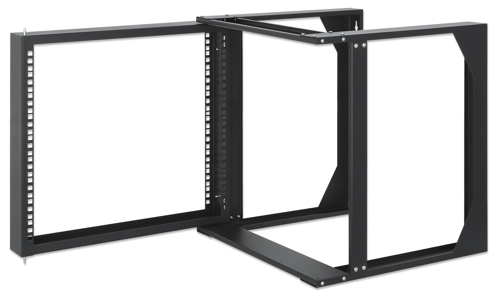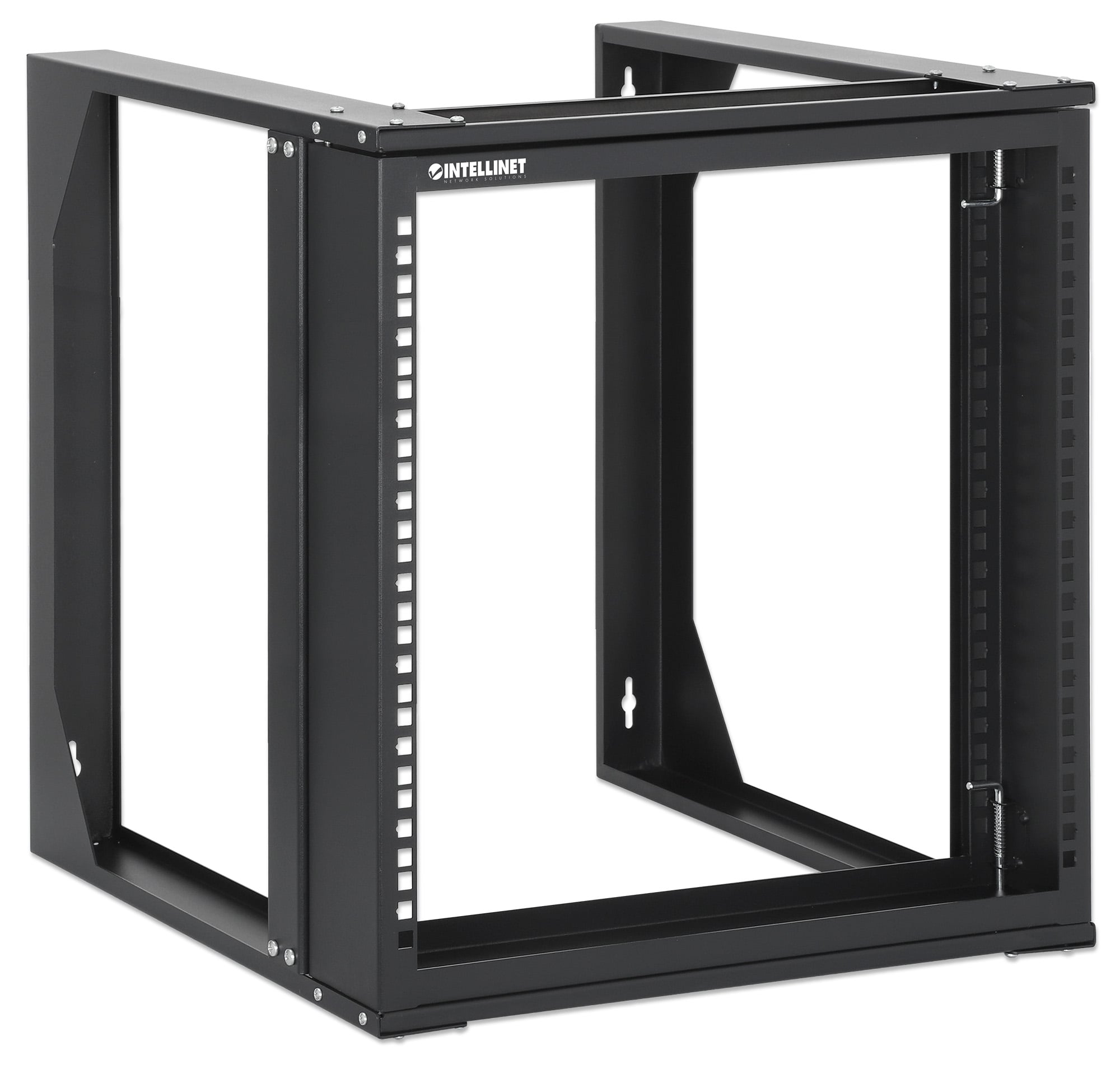Rack 19 aperto con 2 montanti, 9 unità, flat packDesign con cerniera frontale che consente al telaio di aprirsi per un accesso ancora più facile ai pannelli; Installabile a muro per installazioni di rete con spazio a pavimento limitatoSoluzione semplice ed economica; ottimo per testare apparecchiature IT e per l uso in ambienti sicuri che non richiedono un armadio dotati di serratura; Struttura robusta in acciaio SPCC laminato a freddo di alta qualità con verniciatura a polvere antistatica; Due montanti con guide di montaggio anteriori e e telaio reversibileMassima capacità di carico supportata di 30 kg con telaio chiuso o 10 kg con telaio aperto; Massima profondità utile: 400 mm; compatibile con tutte le apparecchiature standard 19 polliciInclude materiale di montaggio su 19 con set da 20 dadi in gabbia; Il telaio può essere aperto verso sinistra o verso destra a seconda delle necessità; Dimensioni (P x L x A): 450 x 500 x 493 mm, 9U; Colore: nero