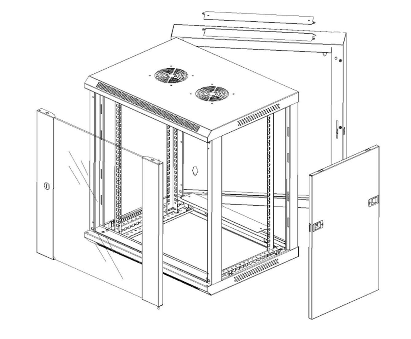 Armadio a muro ispezionabile a doppia sezione 12 unità con pannelli laterali asportabiliPorta in vetro temprato da 5 mm, facilmente removibile e reversibile, apertura maggiore di 180°, chiusura con chiavePorta posteriore apribile di 90°, permette di accedere alla sezione intermedia per facilitare il cablaggio, chiusura con serratura a chiavePannelli laterali ciechi asportabili Due coppie di montanti 19 regolabili in profonditàColore: RAL 7035 (grigio)Dimensioni: 635x600x450+100 mm (AxLxP)* L immagine è indicativa e ha solo lo scopo di mettere in evidenza la struttura dell armadio; per colore e dimensioni fare riferimento alla scheda del prodotto
