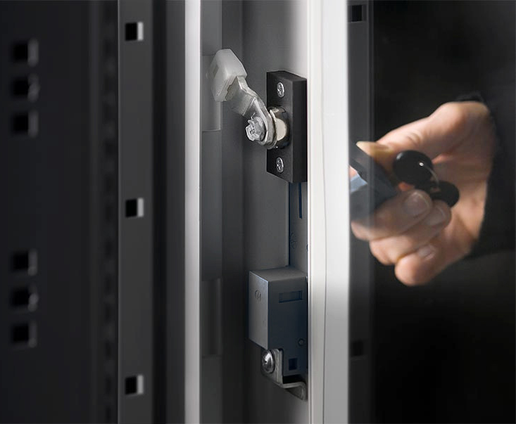 Può essere montato e smontato utilizzando una semplice chiave, permettendo quindi di effettuare un’installazione veloce. Questa rapidità di montaggio è garantita dalle cerniere a sgancio rapido presenti sulla porta anteriore e dalle serrature presenti sui pannelli.