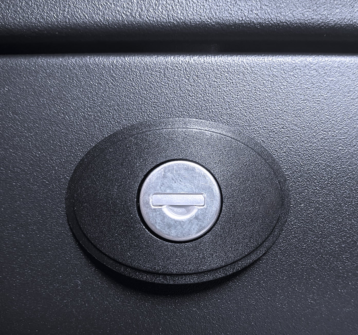 - Porta anteriore grigliata 75%, con apertura di 270°, cerniere a sgancio rapido e maniglia con serratura a chiave