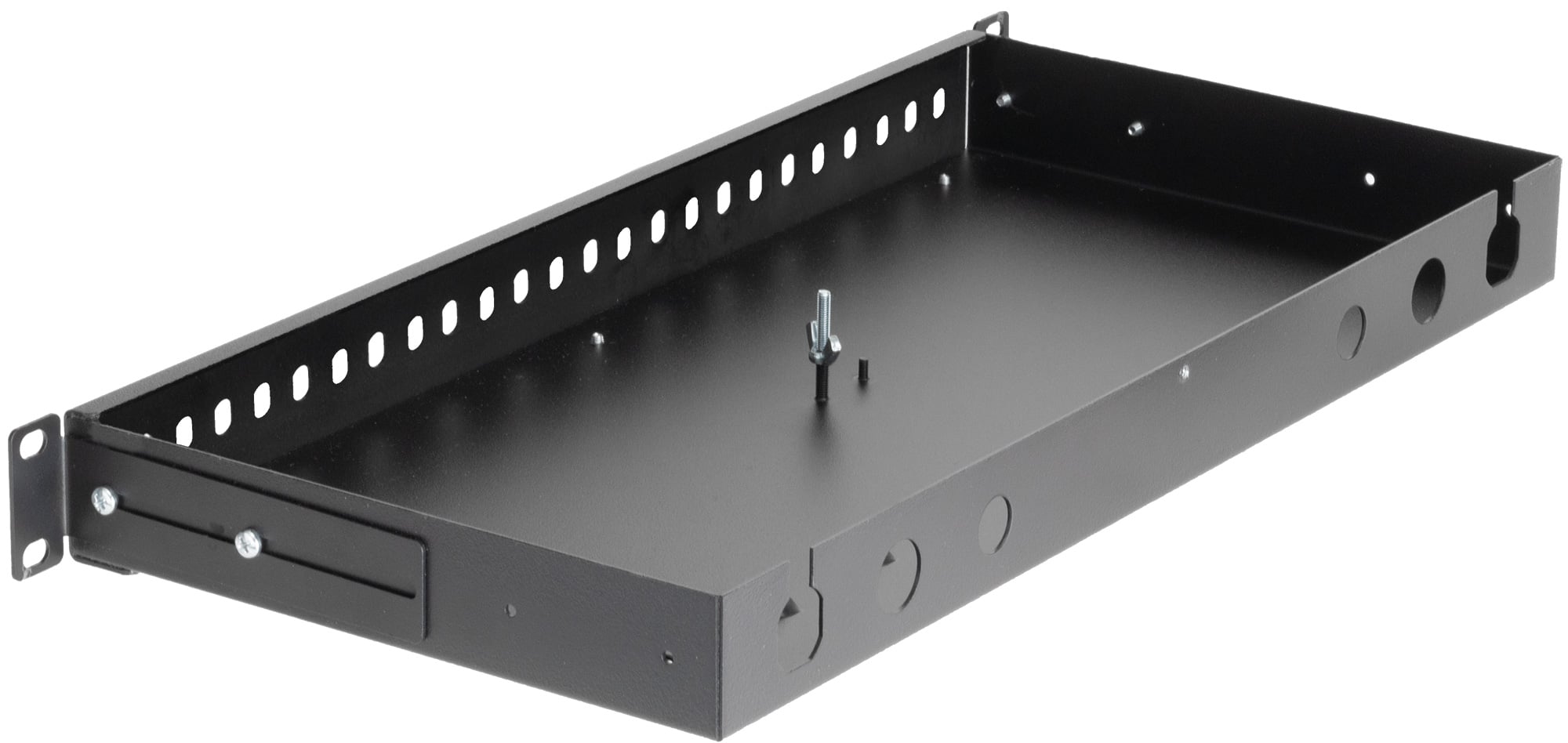 Cassetto ottico scorrevole per montaggio a rack 19” 1HE; Predisposto per il montaggio verticale di 24 bussole ST o FC, foro a D (Bussole non incluse nella fornitura)Pannello frontale estraibile per agevolare le operazioni di connettorizzazione della fibra ottica; Blocco pannello frontale a clip per una veloce ed agevole estrazione del cassettoScatola, frontalino e coperchio F.O. lamiera di spessore 15/10; Squadrette per fissaggio su montanti in lamiera 20/10; Montaggio su 2 montanti da 19; Tutte le porte sono numerateOgni cassetto può contenere fino a 4 vassoi porta giunti; Ingresso cavi sul retro, predisposto per montaggio passacavi tipo PG16/M20; Costruito in lamiera di acciaio da 1.5mmDimensioni (L) x (A) x (P): 482.6 x 44.5 x 220 mm; Colore RAL 9005 Nero