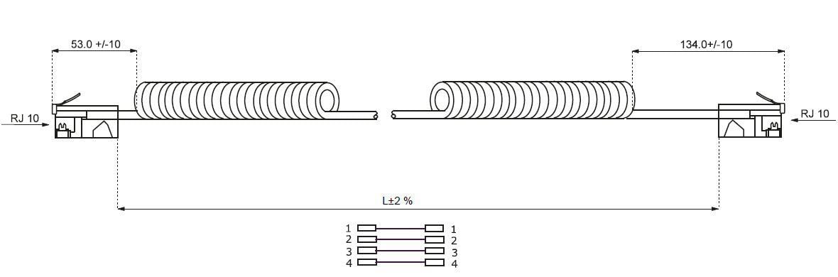 - Cavo telefonico con 2 connettori RJ10, 4 posizioni, 4 contatti.