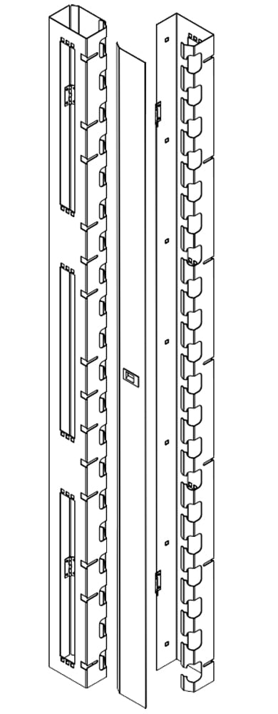 Coppia di canale per la gestione verticale dei cavi con sportello con chiusura a scattoSi monta rapidamente e facilmente sui montanti; Con asole aperte per il passaggio e il posizionamento dei caviSul retro sono presenti 3 slot 19” da una unità disposti in verticale; Prodotte in lamiera di acciaio con spessore di 1,5 mmCompatibili con armadi rack da 42U; Indicate per armadi con larghezza minima 800 mmDimensioni: 121 x 77 x 1790 mm; Peso: 4,2 kg; Colore: nero