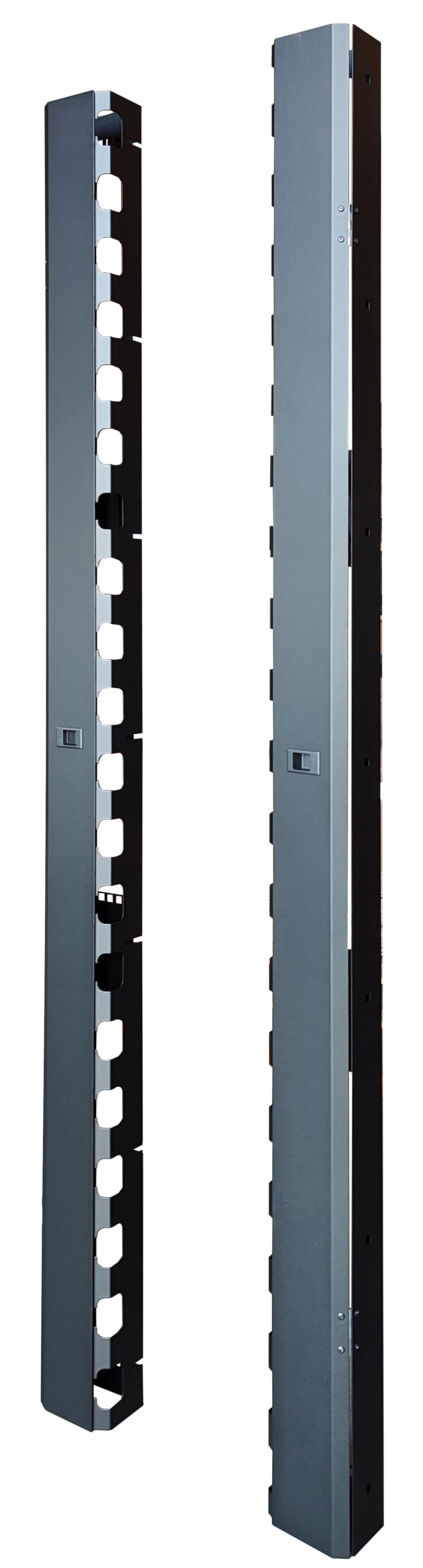 - Coppia di canale per la gestione verticale dei cavi con sportello con chiusura a scatto