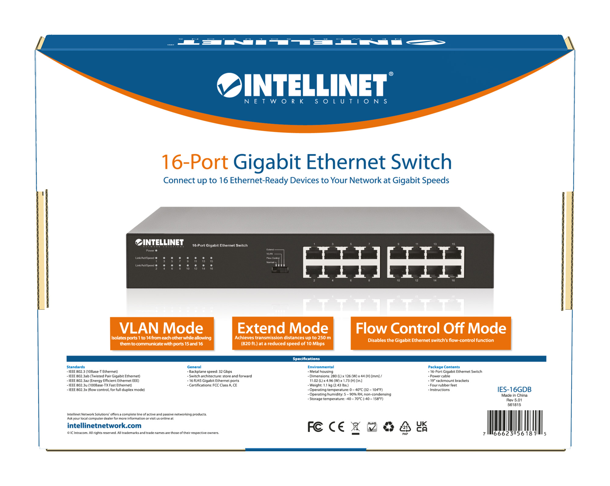 Rilevamento automatico della velocità delle porte 10/100/1000 Mbps; Modalità manuale VLAN per isolare le porte dall 1 al 14 l uno dall altra e permettere loro di comunicare con le porte 15 e 16; Modalità manuale Extend per raggiungere distanza di trasmissione fino a 250 m ad una velocità ridotta di 10 Mbps Switch fabric 32 Gbps; La tecnologia di risparmio energetico permette di disattivare le porte inutilizzate e regolare i livelli di potenza a seconda della lunghezza del cavo; Supporta jumbo frames fino a 9 kBytes; Modalità manuale di disattivazione controllo di flusso per disabilitare la funzione controllo di flusso dello switch Gigabit Ethernet Tutte le porte RJ45 supportano Auto-MDIX (auto uplink); Architettura store and forward switching; Supporta controllo del flusso 802.3x per la modalità full duplex e backpressure collision-based per la modalità half duplexSupporta 8k indirizzi MAC; 512 kBytes buffer di memoria; Formato desktop compatto con robusto alloggiamento in metallo; Punto di messa a terra per proteggere l apparecchiatura da sovratensioni elettriche esterne; Piedini in gomma per uso desktop antiscivoloDesign senza ventola per un funzionamento silenzioso; Include staffe per montaggio rack 19; Dimensioni: 126 x 280 x 44 mm; Colore: nero