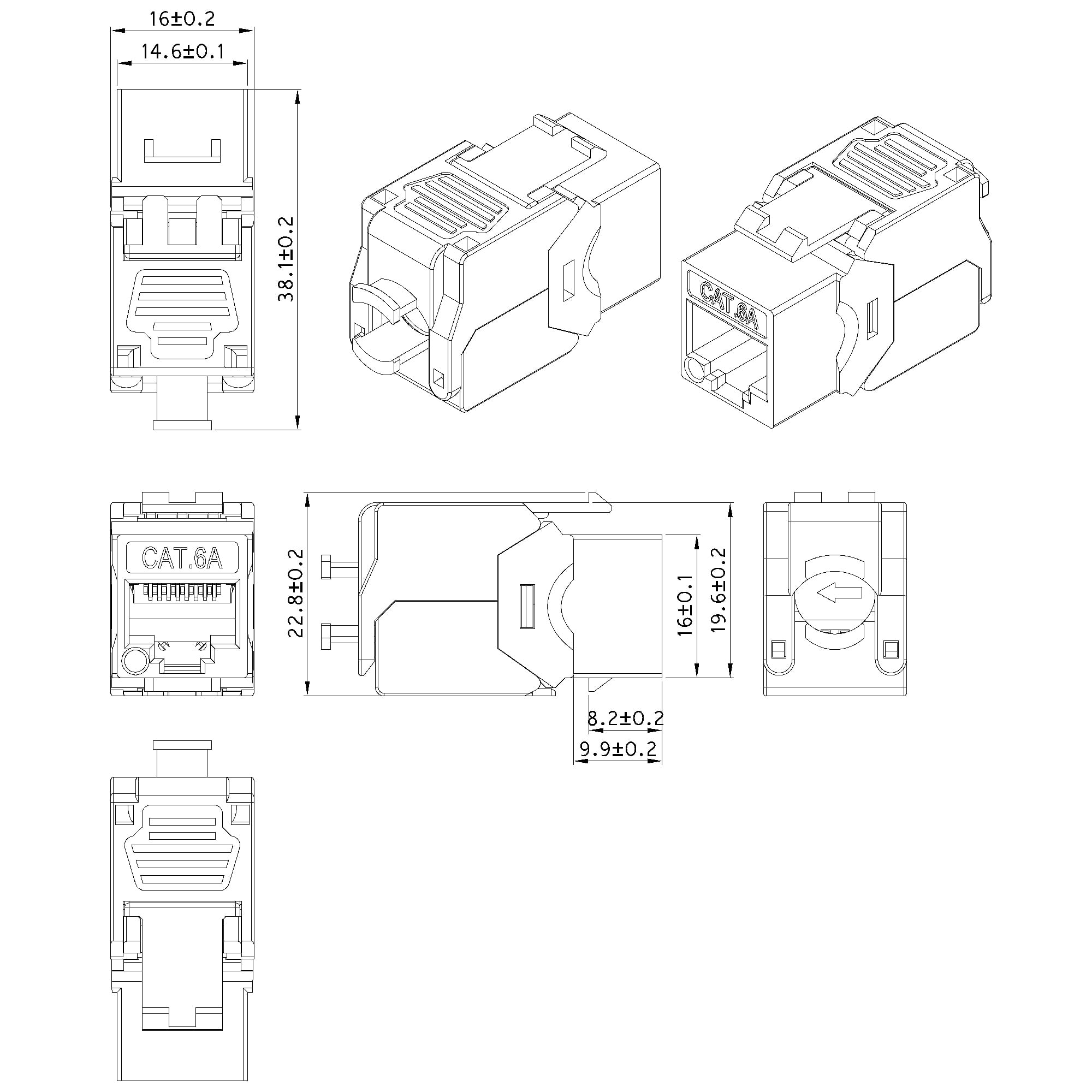Frutto Keystone RJ45 Cat.6A UTP Tool-FreeDa utilizzare con cavi rigidi da 23 a 26 AWGContatti IDC: lega di bronzo e fosforo con placcatura in oro; area di contatto placcata in oro da 3 micro polliciConforme ANSI/TIA-568.2-D-2018Dimensioni (LxPxA): 16 x 38,1 x 22,8 mm; colore: nero