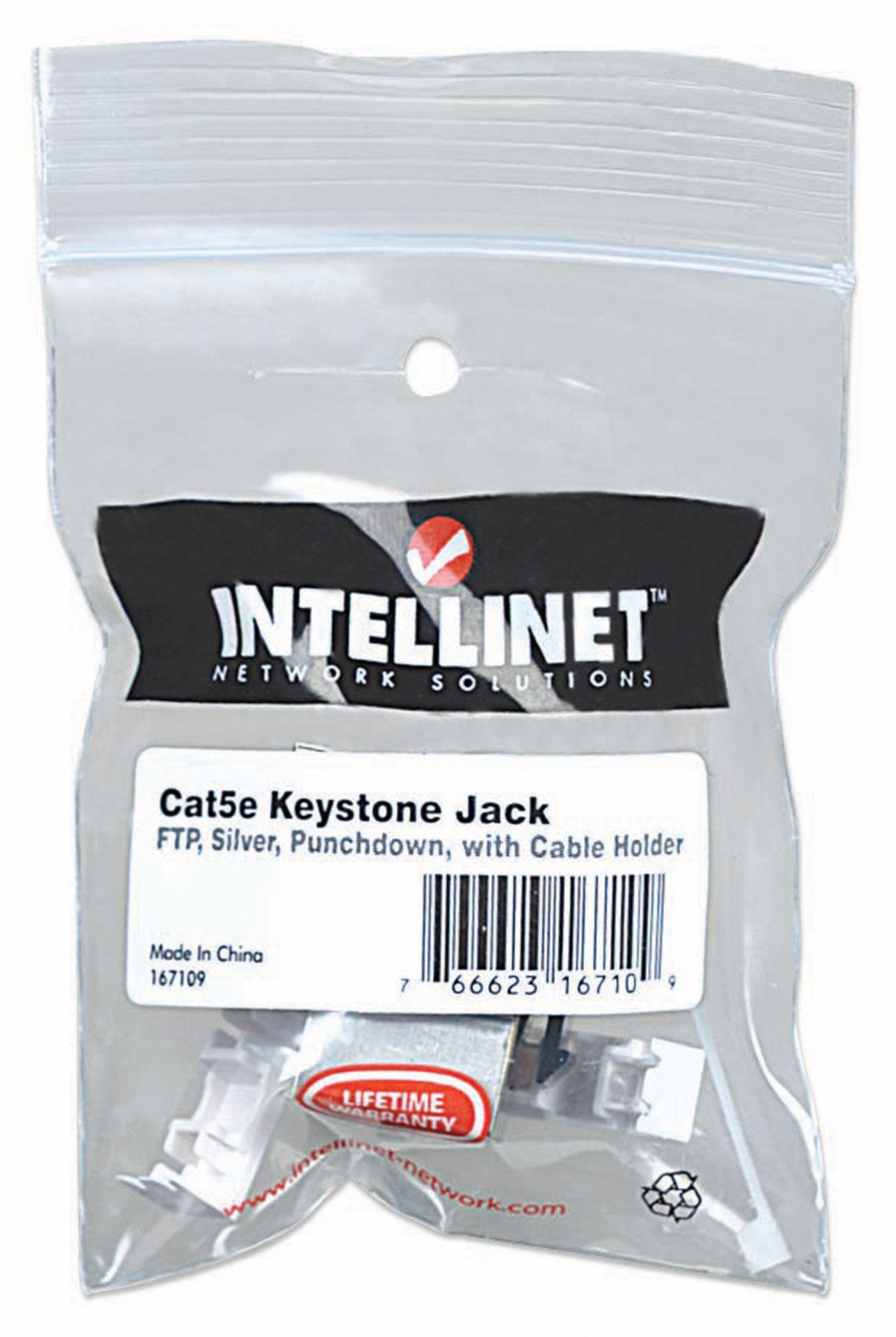 Frutti Keystone RJ45 ad inserimentoInclude fermacavo per prevenire tensioni alle connessioniDa usare con cavo Cat6 schermato a coppie ritorte (FTP)Compatibile con inseritori 110 e KroneDa usare con cavo rigido da 22 a 26 AWGColori codificati 568 A/BTemperatura d esercizio: da -40° a 80° CStruttura in metallo. Colore silver