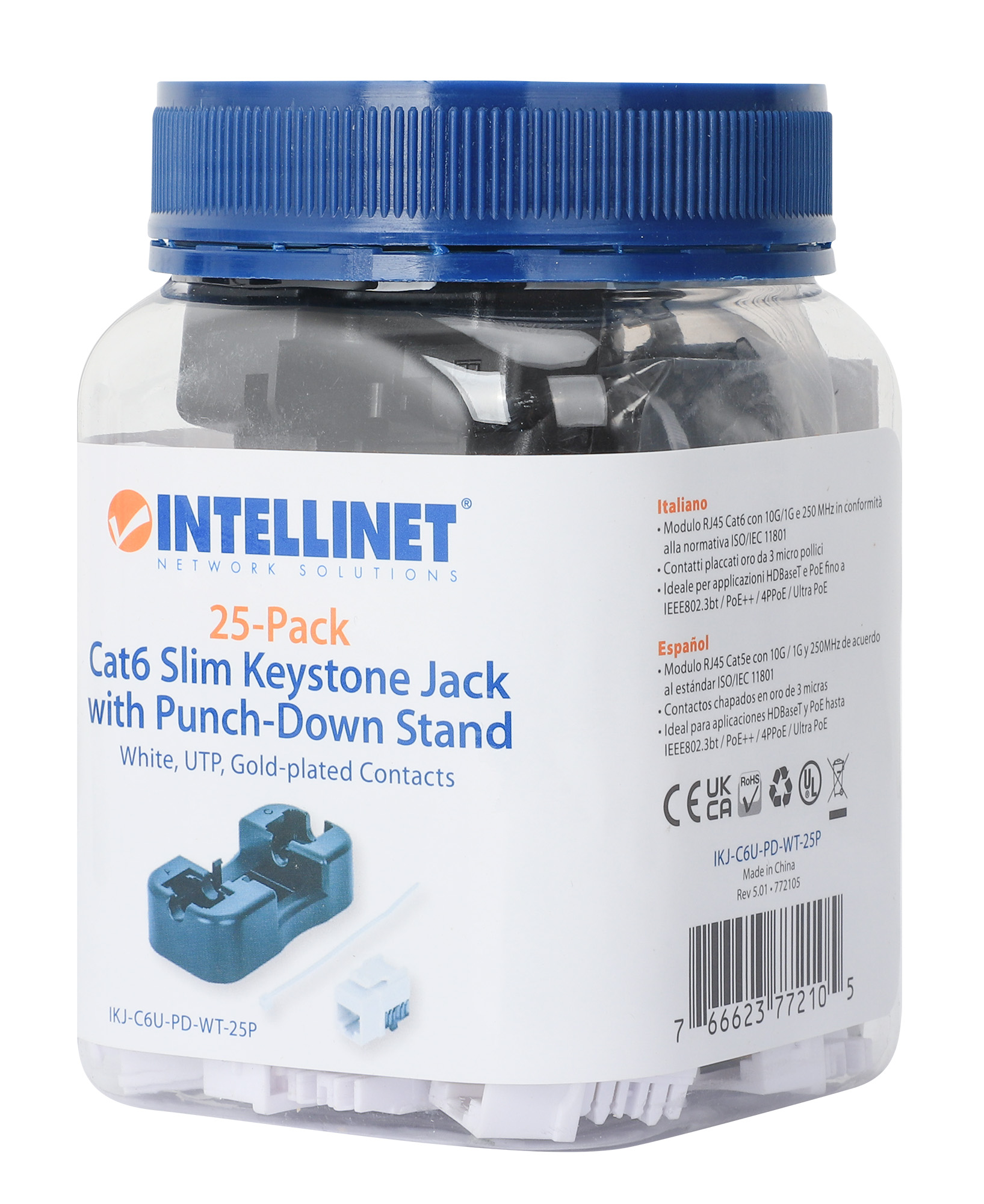 - IWP-JAR-C6BL - Jack Keystone Slim Cat6 con supporto punch-down, confezione da 25, blu