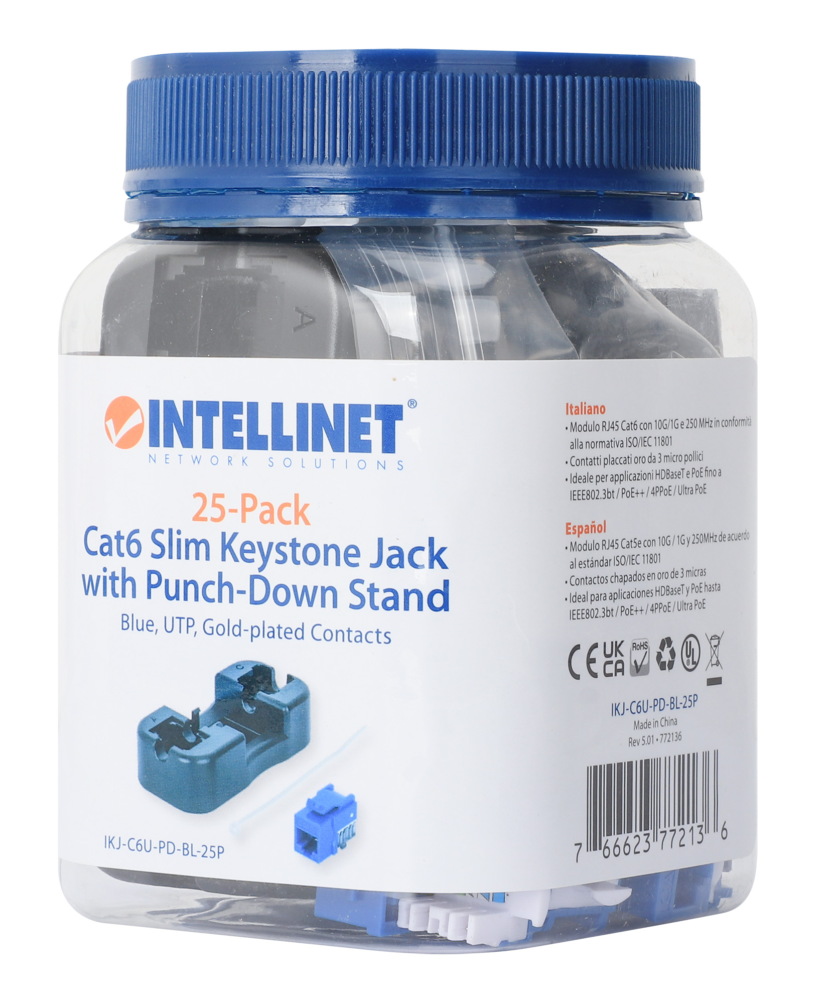 - IWP-JAR-C6BL - Jack Keystone Slim Cat6 con supporto punch-down, confezione da 25, blu
