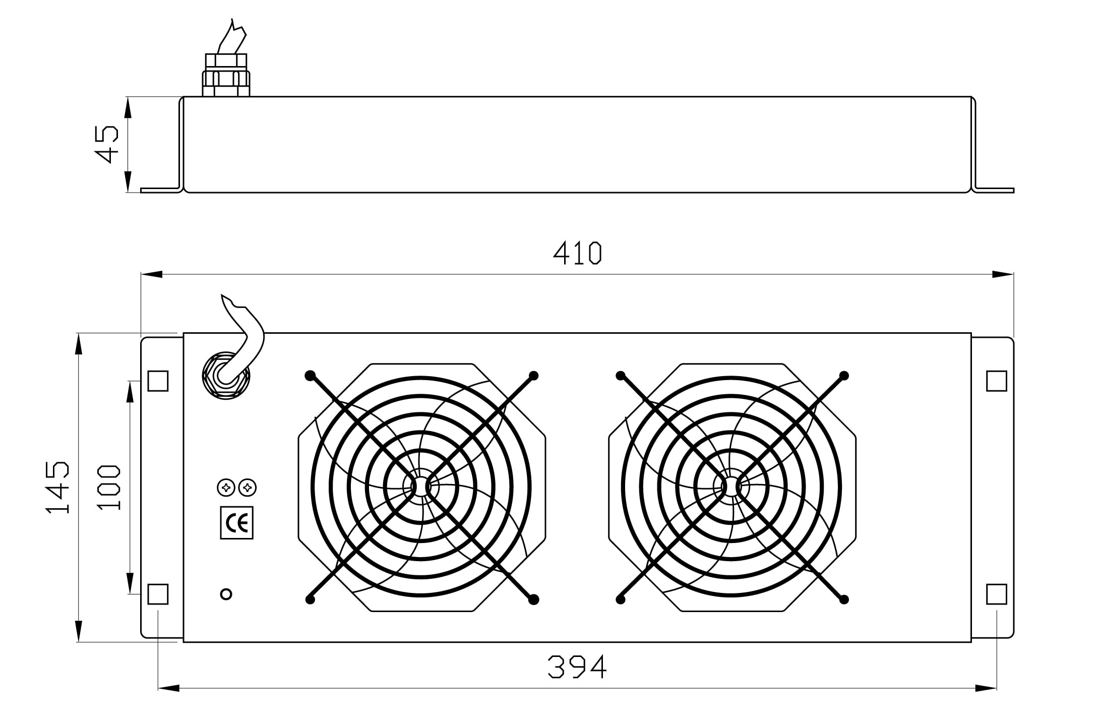 Gruppo di ventilazione a 2 ventole per installazione a soffitto per rack 19, senza termostatoTemperatura di esercizio: -10°C + 60°CContenitore in lamiera di acciaio con griglia cromata di protezioneLivello di rumorosità: 43 dbAAssorbimento: 23W cad. ventolaAlimentazione: 230V - 50HzCon cavo di alimentazione 3x1 mm2 - lunghezza 2,5 mColore RAL 7035 Grigio