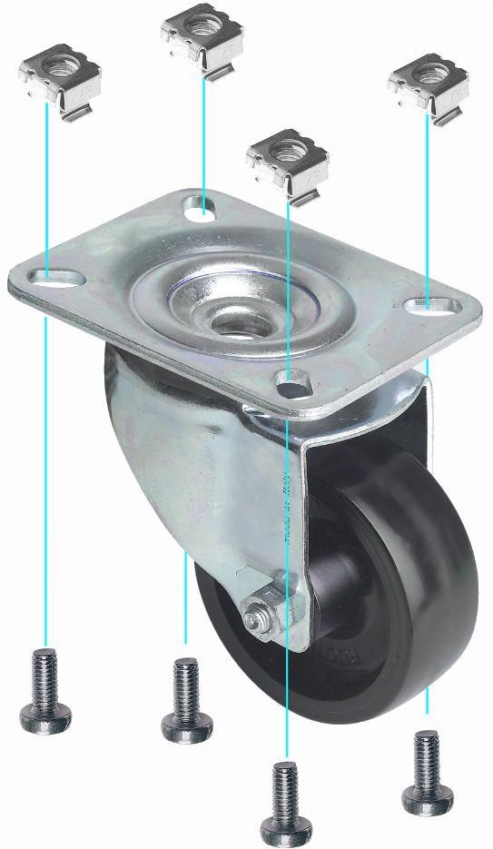 Kit 4 Ruote a 4 Punti di Fissaggio per Armadi Server Serie Lite