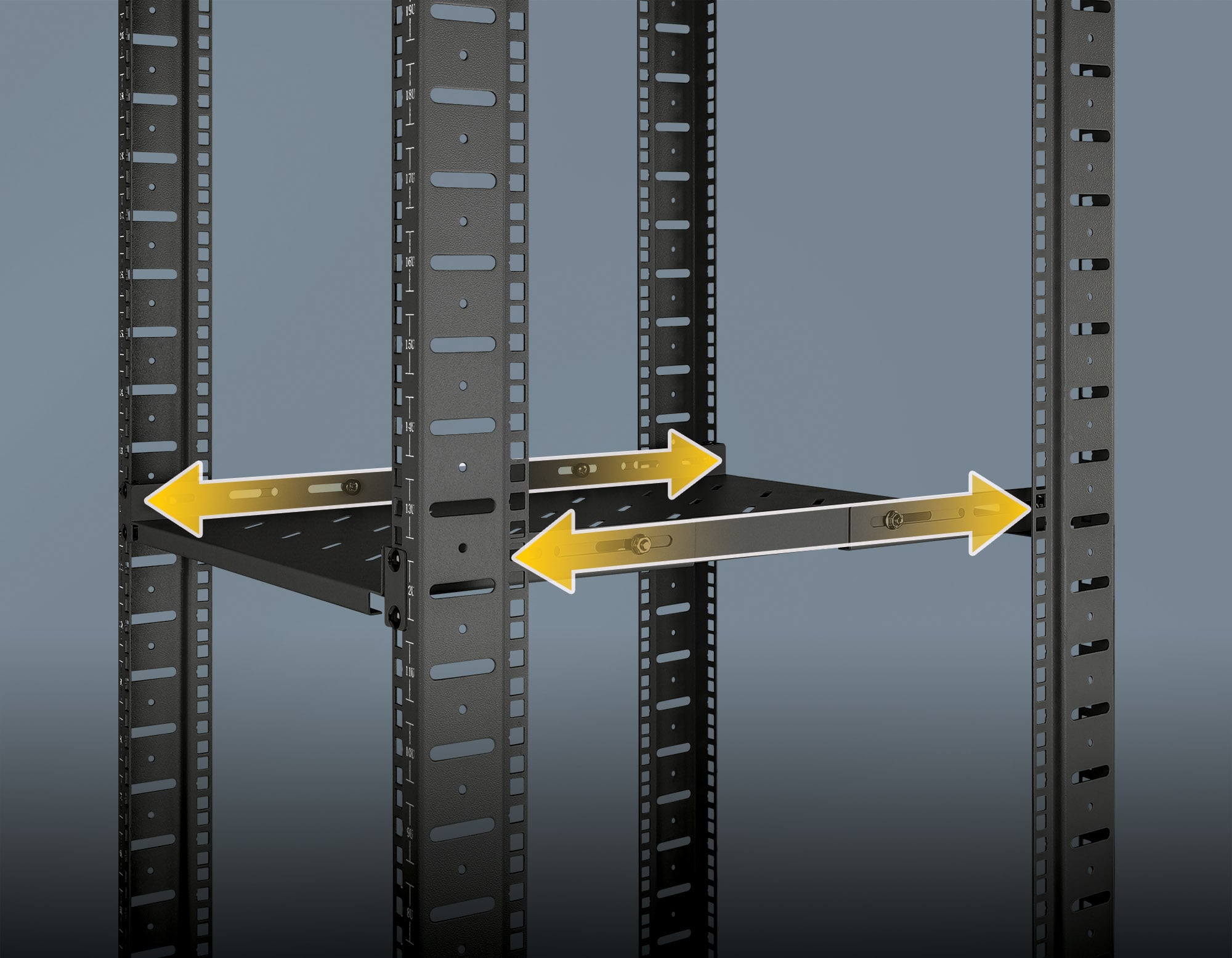 - Mensola fissa estensibile con profondità regolabile da 550 a 750 mm per installazioni flessibili in armadi da 800 mm di profondità