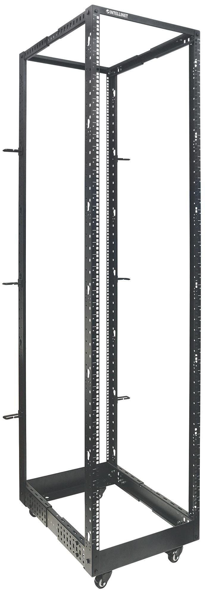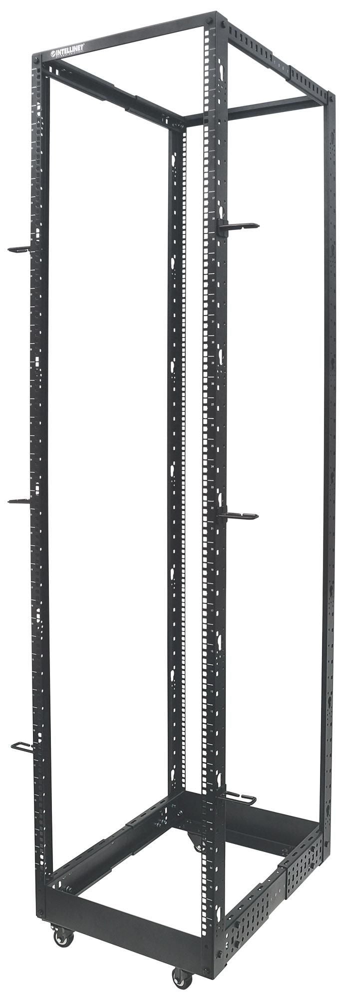Rack 19 aperto con 4 montanti, 45 unitàIdeale per installare server, apparecchiature di rete e per tutte le applicazioni installabili a rack 19Installazione veloce grazie alle unità numerate e all indicazione della profondità impostataProfondità regolabile da 55.88 a 101.6 cmPossibilità di utilizzare ruote, piedini o di effettuare il fissaggio direttamente a pavimentoLa confezione include ruote, piedini, passacavi e viteria per il montaggioConfezione flatpack