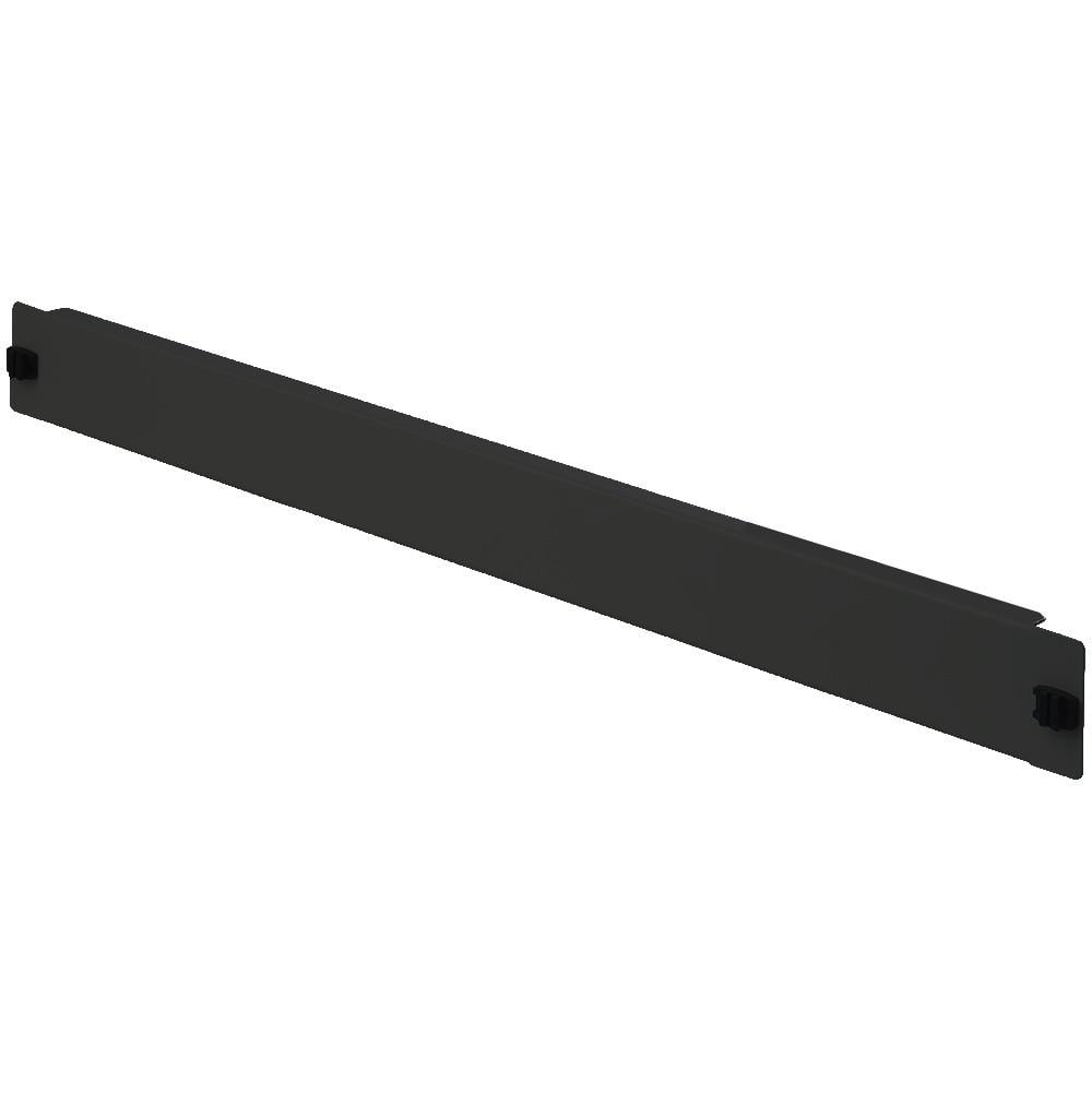 Pannello cieco da 1 unità Per armadi rack 19Montaggio rapido senza vitiSistema di fissaggio toollessNon richiede utensiliColore RAL 9005 NeroMateriale: Metallo Larghezza 482,6 mm Altezza 44 mmDotato di due clip di chiusura