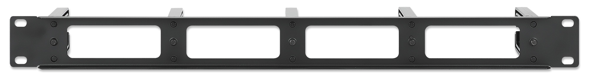 Pannello passacavi 1unità installabile su armadi 19Mantiene i cavi in ordine5 anelli lunghi di plastica (68.6x42.0 mm)Dimensioni pannello: 482.6 x 44.5 mmColore: RAL 9004 Nero
