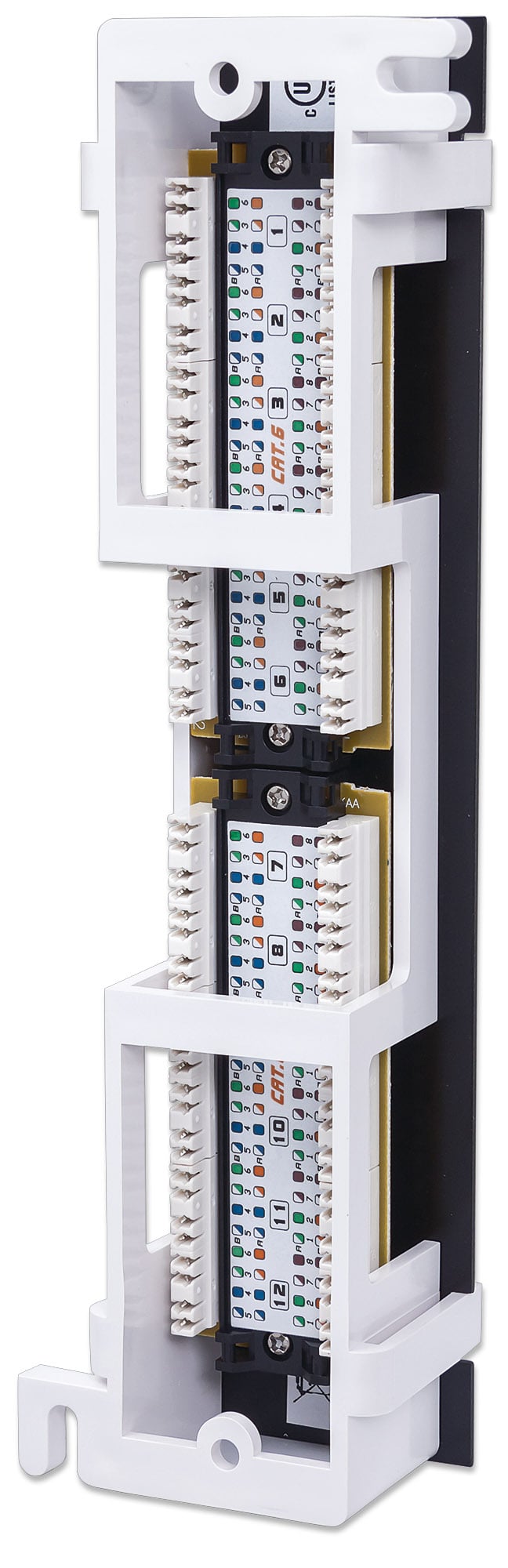 Pannello Patch 12 Porte UTP Cat6 Installazione a MuroTerminazioni sicure perchè i contatti della presa sono doratiCompatibile sia con inseritori 110 che KroneDa usare con cavo rigido e flessibile da 22 a 26 AWGDa utilizzare con cavo Cat6 non schermato a coppie ritorte (UTP)Le prestazioni della Cat6 sono conformi agli standard ANSI/TIA/EIA 568 B.2-1Ideale per applicazioni di rete Ethernet, Fast Ethernet, e Gigabit Ethernet Collega le porte RJ-45 alla rete