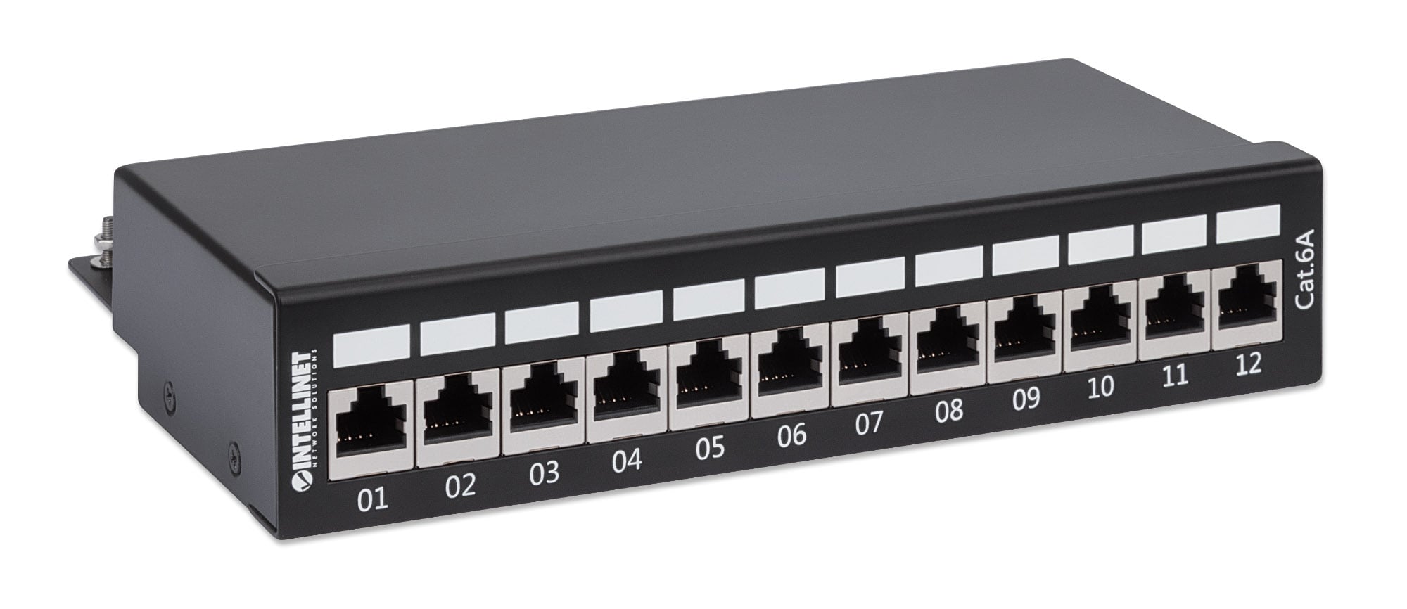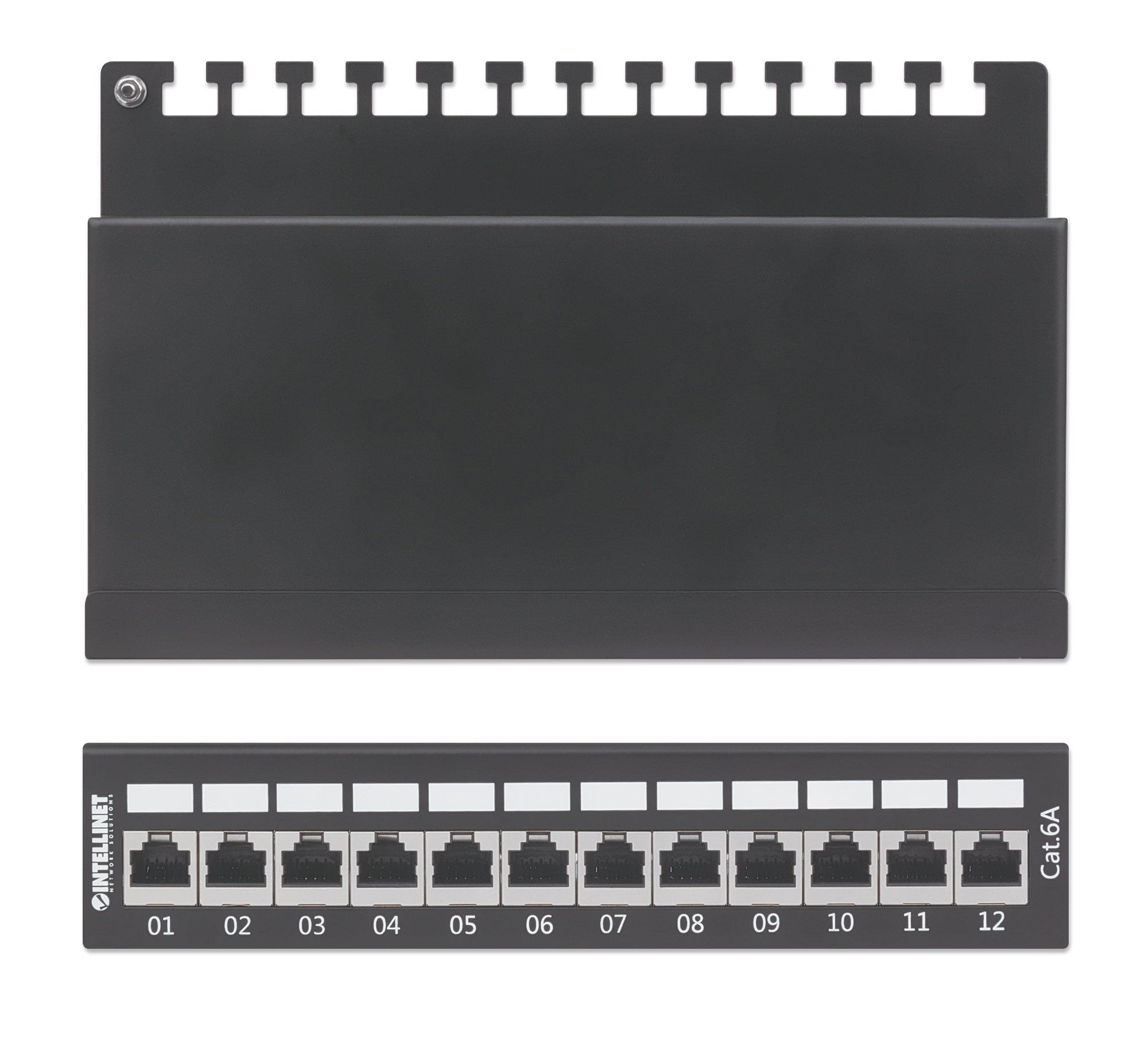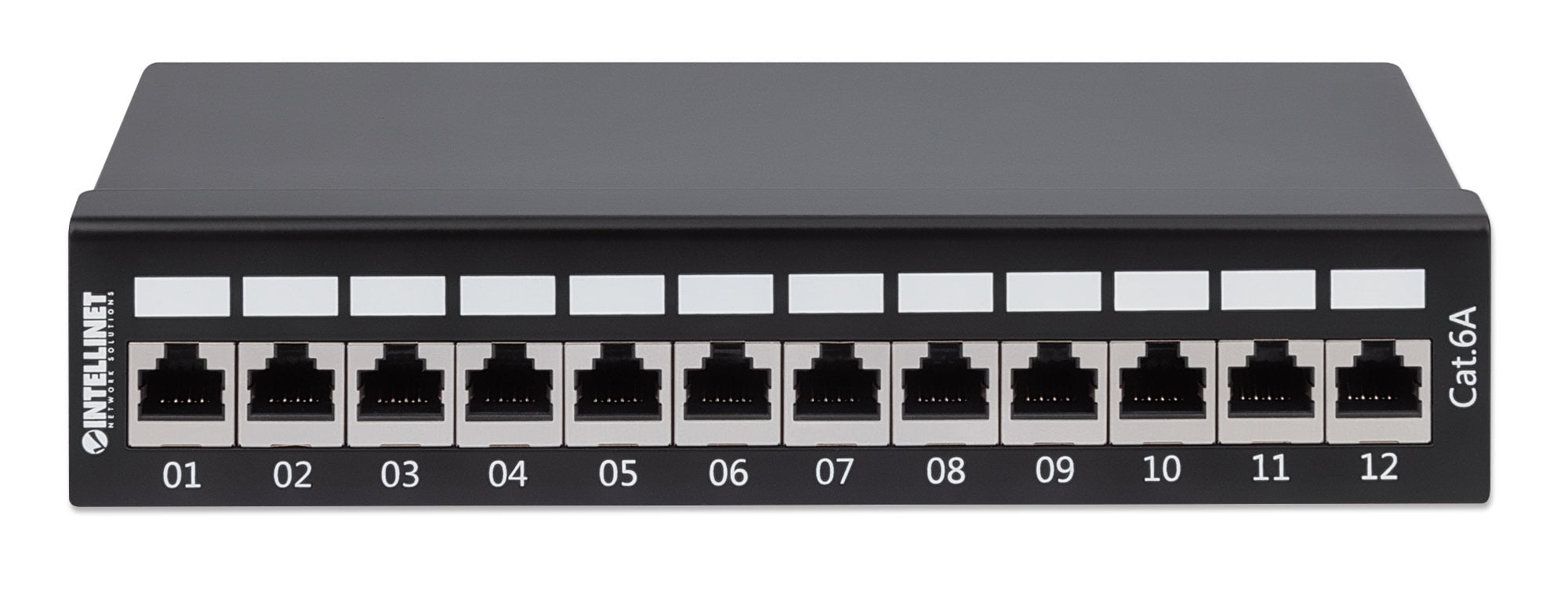 Pannello Patch 12 Posti Cat6a Schermato da Scrivania Nero