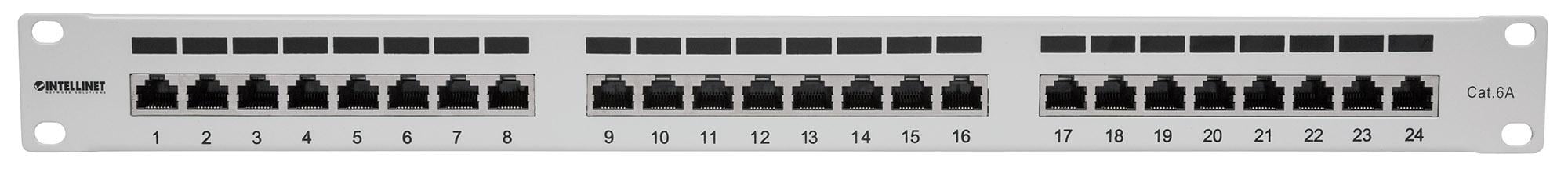 Pannello Patch 24 porte Cat6a dotato di terminazioni solide e affidabili per cavo in rame, con contatti placcati oro da 3 micronInstallazione semplificata con inserimento dall altoCompatibile con gli inseritori KroneSupporta cavo rigido e flessibile con AWG da 22 a 24Per l uso con cavo di rete Cat6a twisted pair schermato (FTP)Ideale per applicazioni di rete Ethernet, Fast ethernet e Gigabit EthernetConforme agli standard per il montaggio a rack 19