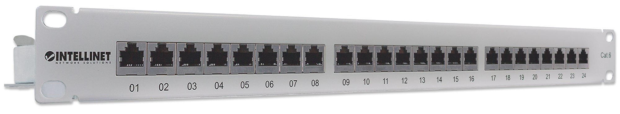Pannello patch 24 posti Cat.6 schermatoTerminazioni solide e resistenti per cablaggi in rame caratterizzati da connettori con contatti dorati da un minimo di 3 mm 50 micro-polliciInstallazione semplificata con inserimento dall altoCompatibile sia con 100 che KroneSupporta cavo rigido e flessibile da 22 a 26 AWGDa utilizzare con cavo Cat6 schermato a coppie ritorte (FTP)Ideale per applicazioni di rete Ethernet, Fast ethernet e Gigabit EthernetConforme agli standard per montaggio a rack 19Dimensioni: 482 mm (L) x 43 mm (A) x 109 mm (P)