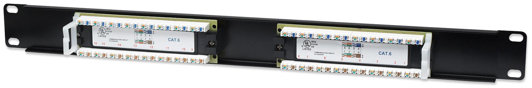 Pannello patch UTP 16 posti RJ45 cat. 6Terminazioni solide e resistenti per cablaggi in rame caratterizzati da connettori con contatti dorati da un minimo di 3 mm 50 micro-polliciCompatibile sia con inseritori 110 che KroneSupporta cavo rigido e flessibile da 22 a 26 AWGDa utilizzare con cavo di rete non schermato a coppie ritorte (UTP) Cat6Le prestazioni della Cat6 sono conformi agli standard ANSI/TIA/EIA 568 B.2-1Ideale per applicazioni di rete Ethernet, Fast Ethernet e Gigabit EthernetCollega le porte RJ-45 alla reteConforme agli standard 19 per montaggio a rack