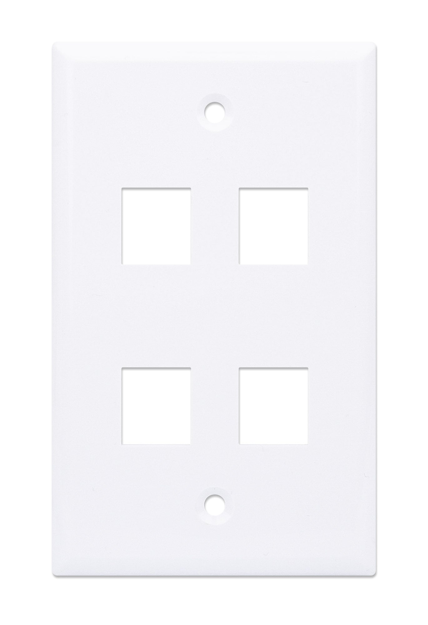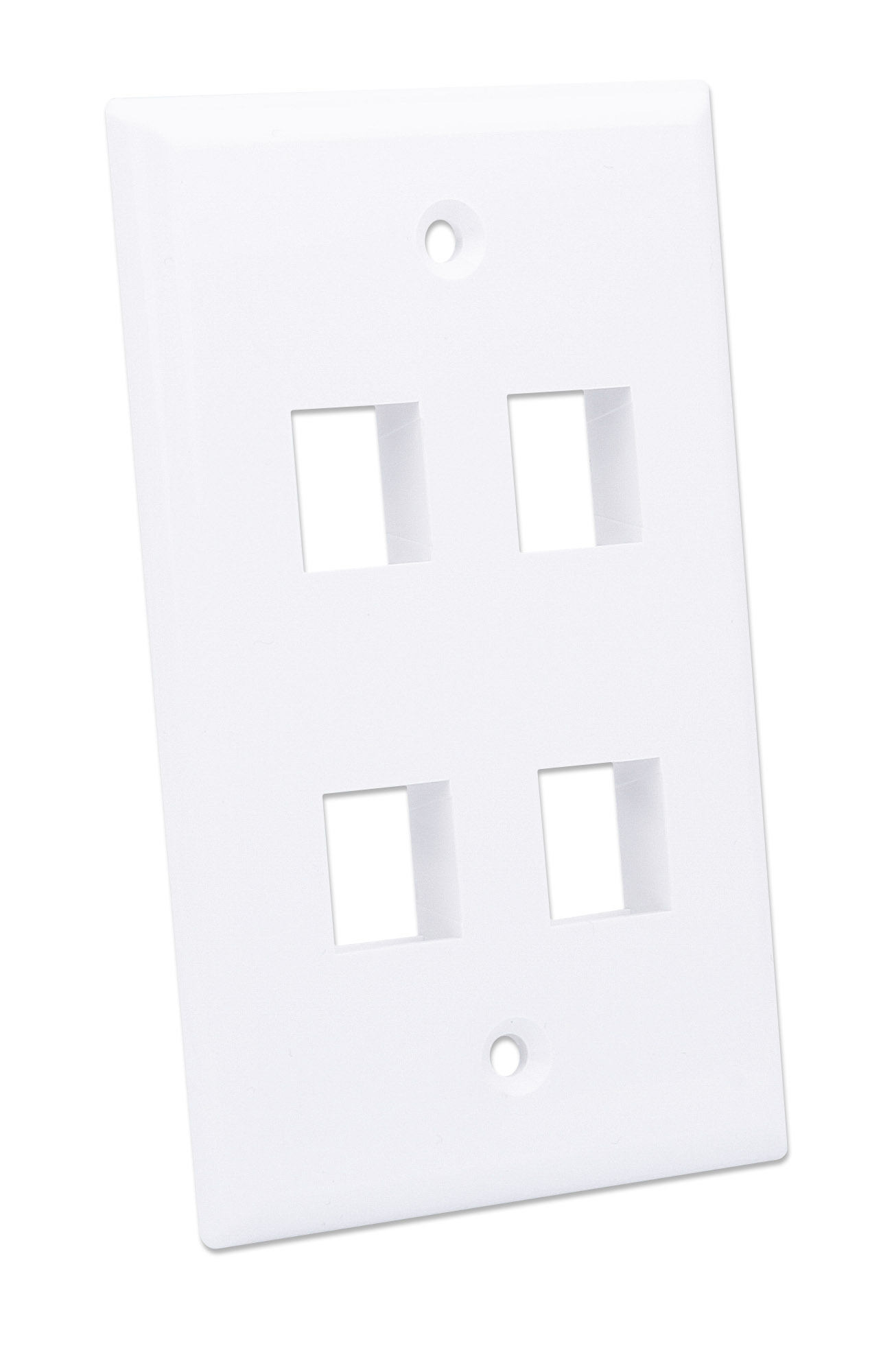 Placca a 4 posti mod. 503 per montaggio su prese a muroSupporta l inserimento di frutti tipo KeystonePermette di alloggiare fino a 4 frutti schermati e non schermatiDimensioni: 114 x 70 mm; 82.5 mm distanza tra le viti di fissaggioInclude 2 # 6 viti lunghe 25 mm; Colore: Bianco