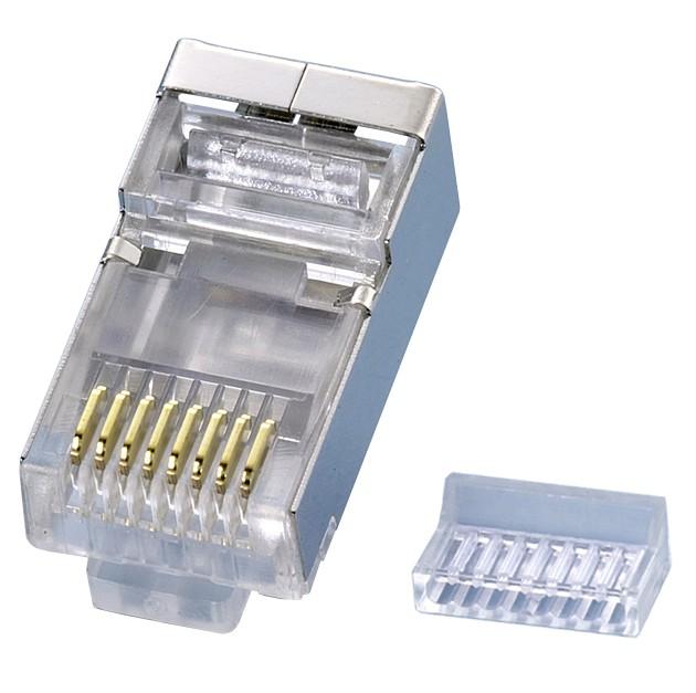 Plug Cat. 5E RJ45 per cavo STP (slitta + plug)Per cavo tondo flessibile con AWG 26Contatti dorati 15 µLamella a 2 contatti per cavo flessibilePer applicazioni su cavo a coppie schermatoPrezzo singolo. Acquistabile in multipli di 10 pezzi