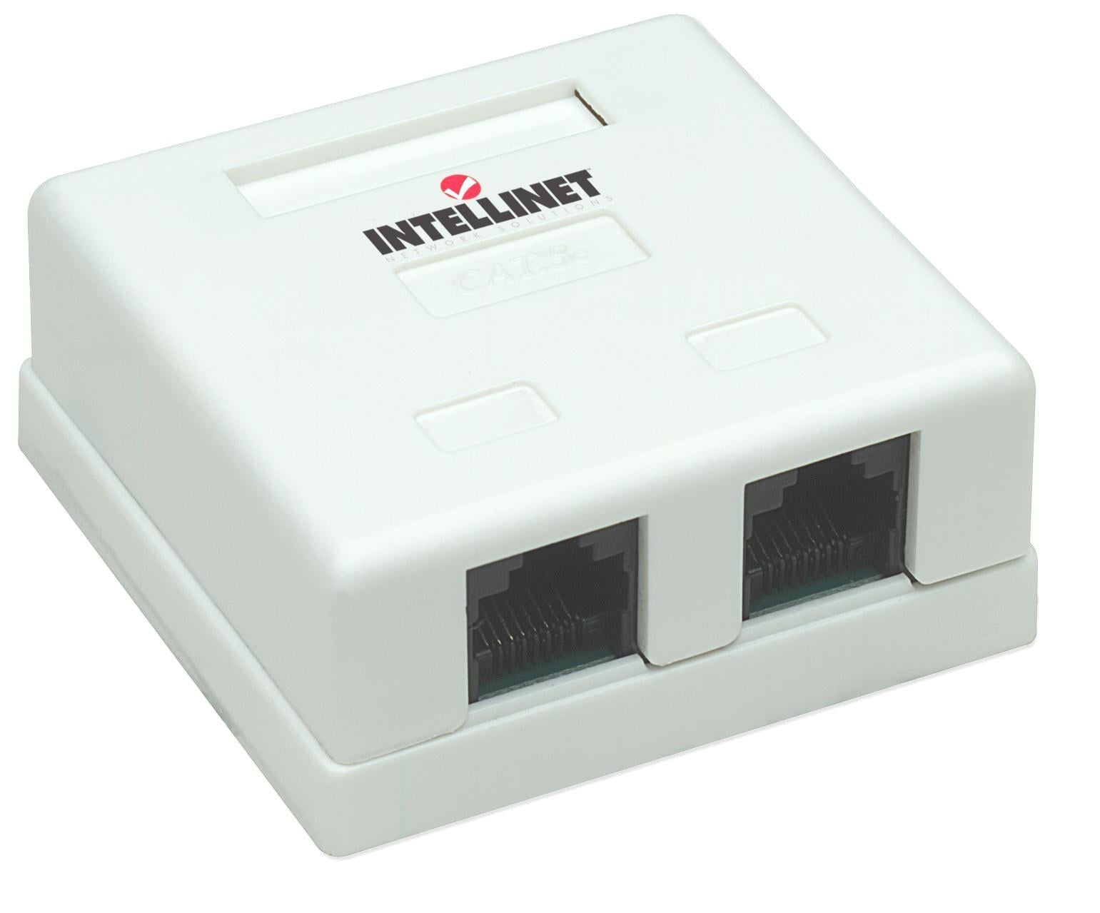 Presa esterna a muro con due porte per connessioni di reteInclude due frutti RJ45 Cat.5E UTPDa utilizzare con cavo di rete RJ45 non schermato a coppie ritorte (UTP) Cat5EAd inserimento; Compatibile con inseritori 110 e KronePrestazioni Cat5E conformi standard ANSI/TIA/EIA 568 B.2Dimensioni: 60 x 60 x 25 mm; Peso: 45.3 g; Colore beige