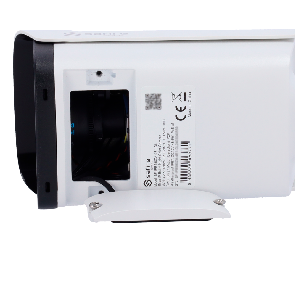 Safire SmartTelecamera Bullet IP gamma E1 Intelligenza ArtificialeRisoluzione 8 Megapixel (3840 × 2160)Ottica Motorizzata 2.8-12 mm | Audio IN | DL 50mIA: Classificazione di persone e veicoliWaterproof IP67 | PoE (IEEE802.3af)