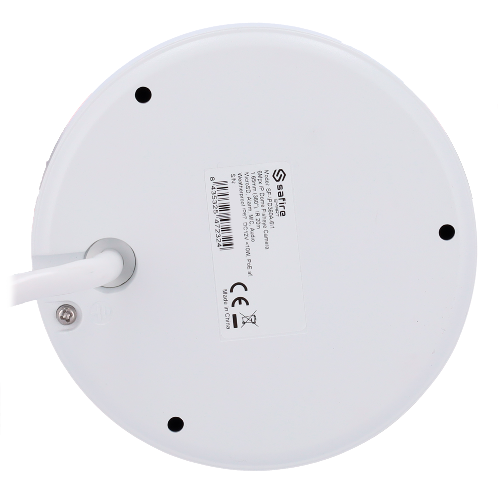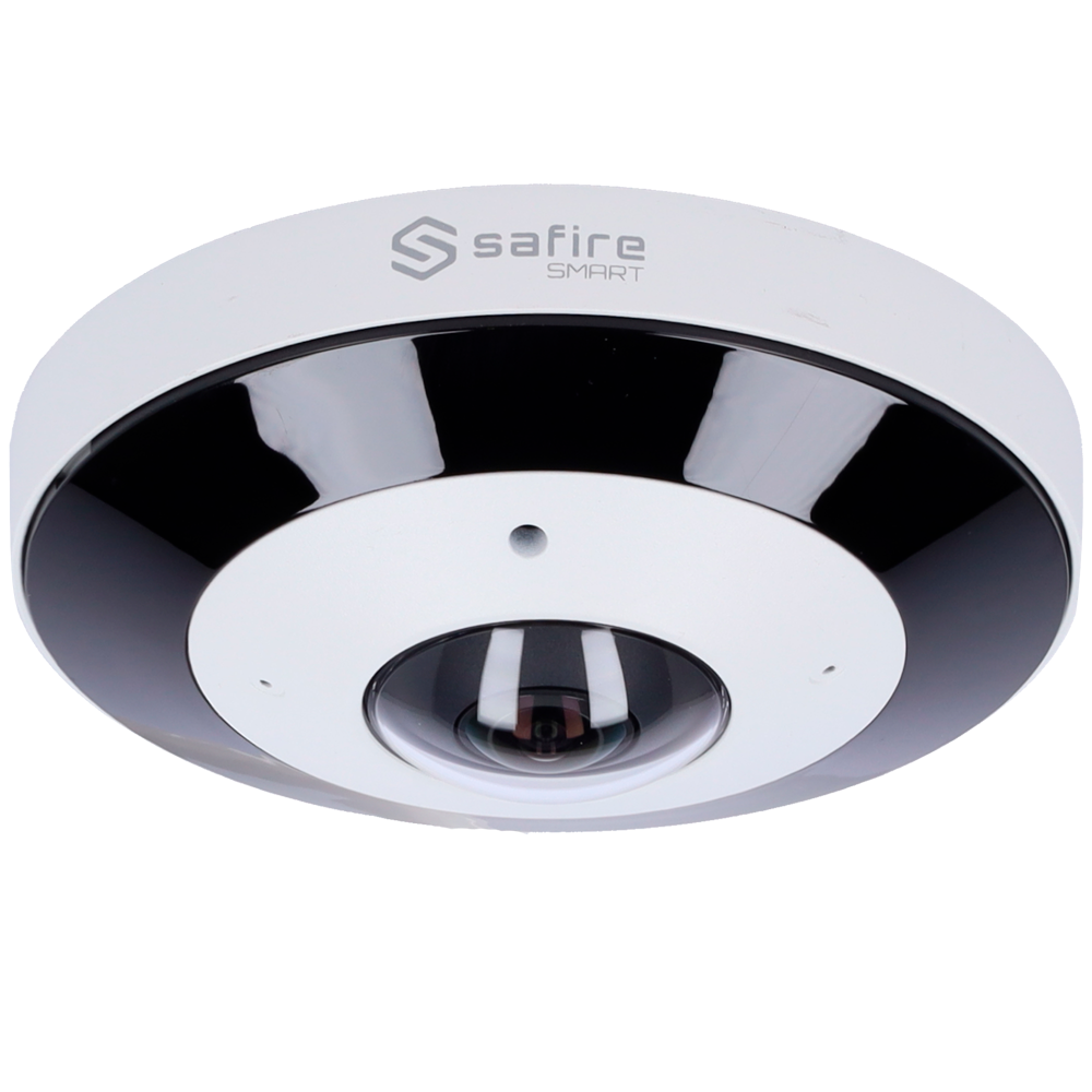 Safire SmartTelecamera Dome IP Fisheye gamma I1Risoluzione 6 Megapixel (2160x2160)Ottica 1.1 mm, grandangolo 360ºAudio, Allarmi, Scheda MicroSD 256GBWaterproof IP67 | PoE (IEEE802.3af)
