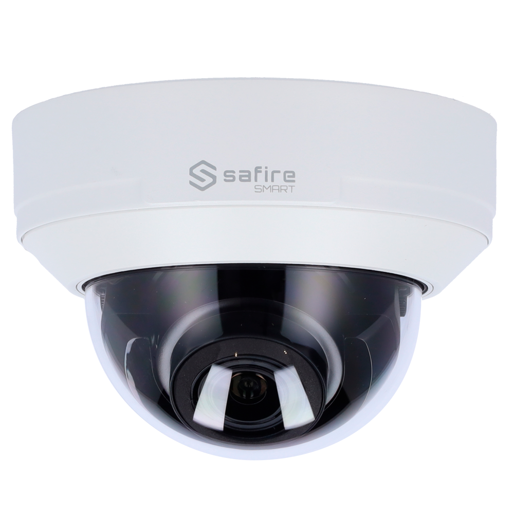 Safire SmartTelecamera Dome IP gamma E1 Intelligenza ArtificialeRisoluzione 8 Megapixel (3840x2160)Ottica motorizzata 2.8-12 mm | Microfono | IR 50mIA: Classificazione di persone e veicoliIP67 & IK10 | PoE (IEEE802.3af) | P2P