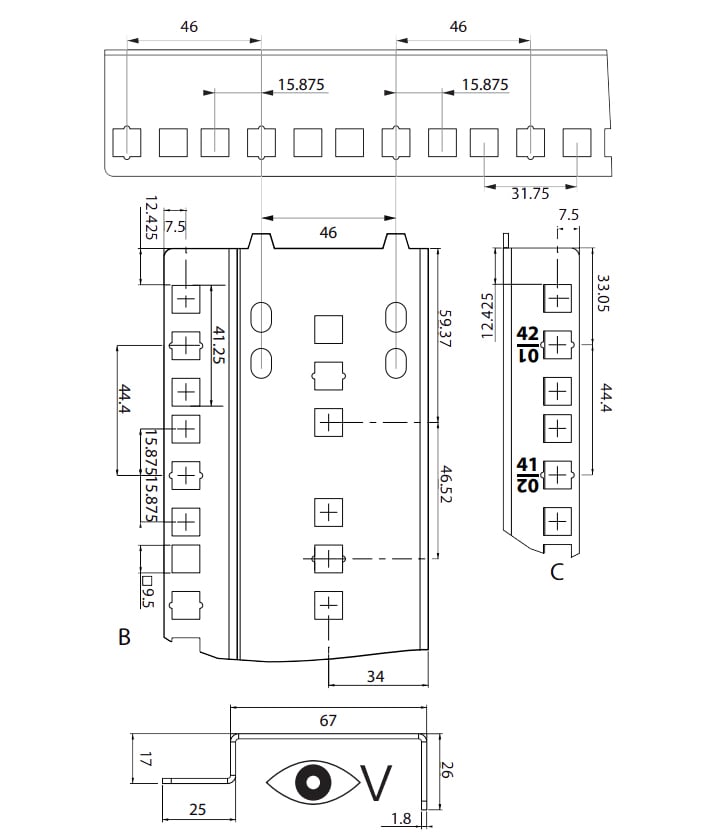 - Fissaggio viti e in gabbia M6x14 mm forniti