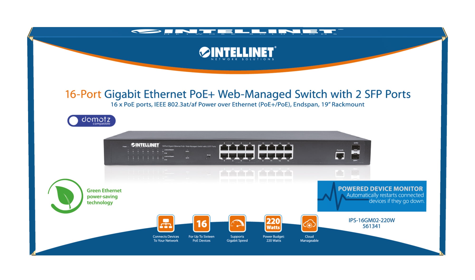 Switch Gigabit Ethernet 16 Porte PoE+ Web Managed con 2 Porte SFP