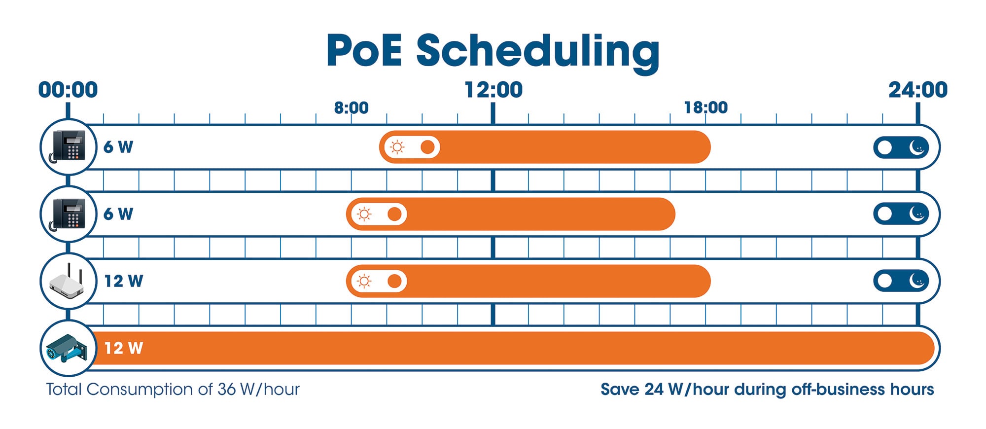 - PoE Management - impostazione della porta PoE, priorità, accensione ritardata, riavvio dispositivo PoE programmato e monitoraggio del dispositivo PoE