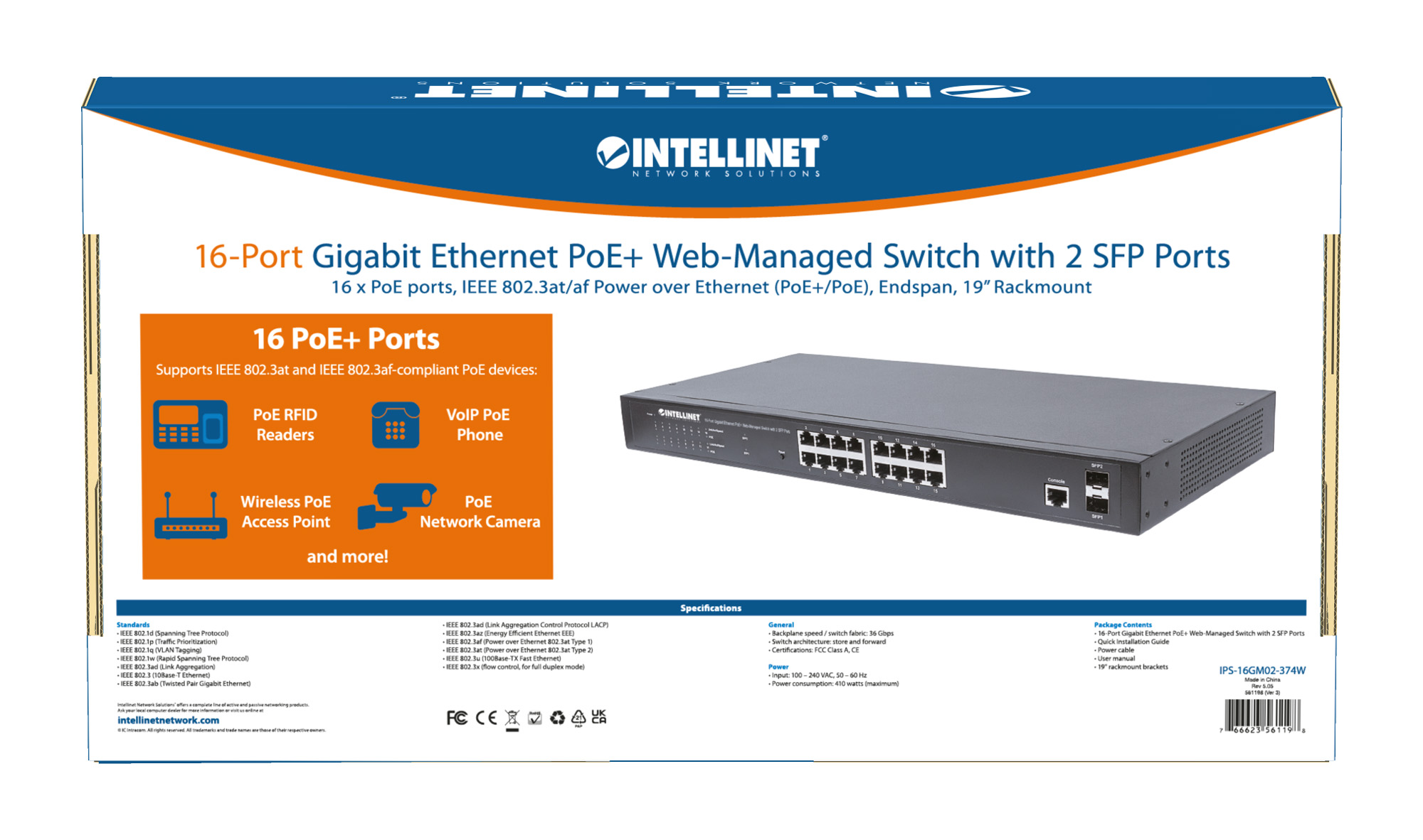 - Fornisce connessione di alimentazione e dati per un massimo di 16 dispositivi di rete PoE