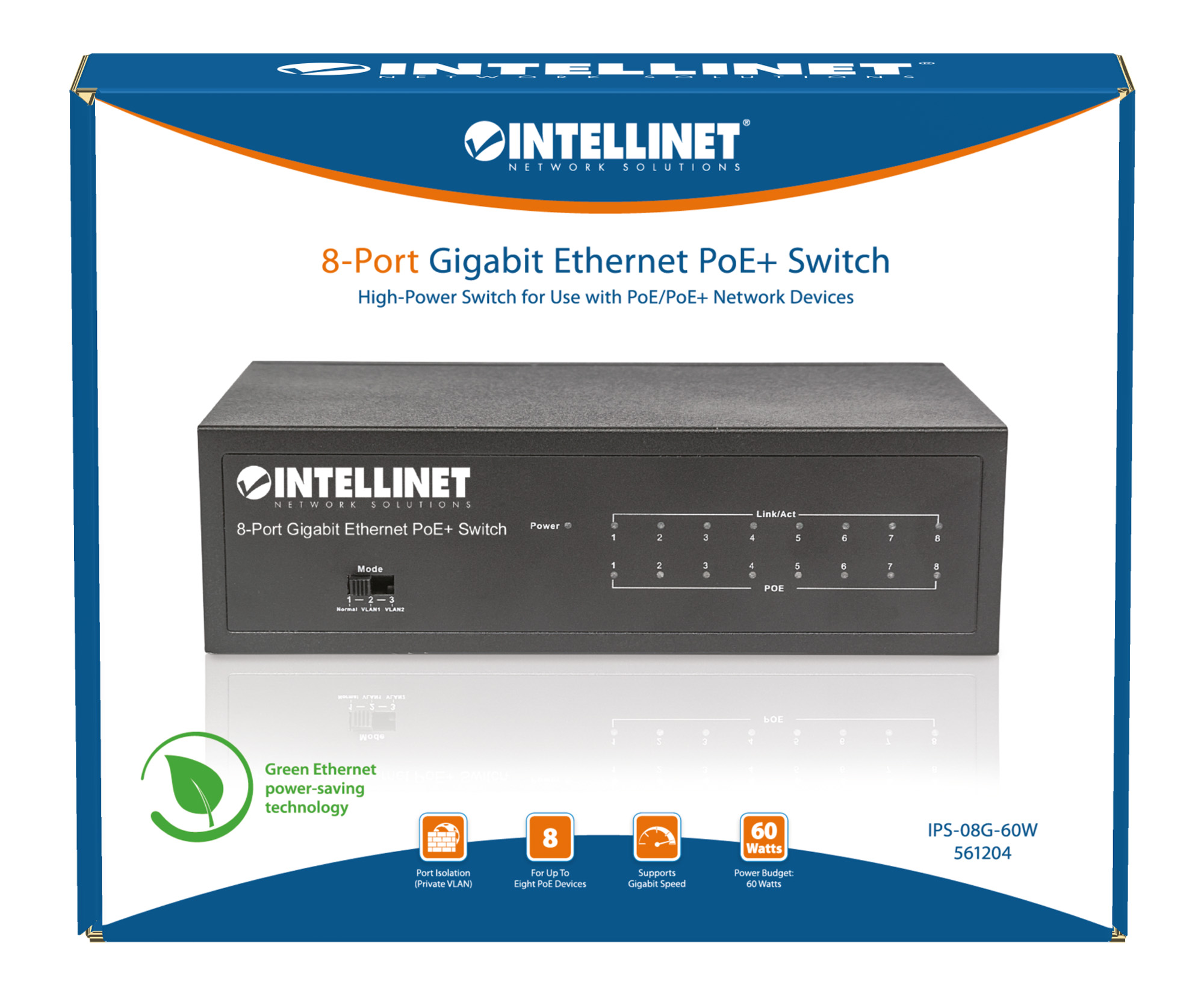 Fornisce alimentazione e connessione dati fino a otto periferiche di rete PoERisparmia tempo e denaro, fornendo dati e alimentazione tramite una rete cablata esistenteRilevamento automatico velocità porte 10/100/1000MbpsCompatibile IEEE 802.3at/af RJ45 PoE/PoE+ sulle porte di uscitaFornisce funzionalità VLAN privata (isolamento porta)La tecnologia di risparmio energetico permette di disattivare le porte inutilizzate e regolare i livelli di potenza a seconda della lunghezza del cavoBudget di potenza totale 60 watts Supporta periferiche compatibili IEEE 802.3at e IEEE 802.3af (access point wireless, telefoni VoIP, IP Camera)Supporta rilevamento IEEE 802.3at/af e corto circuito, protezione contro sovracarico e alto voltaggioTutte le porte RJ-45 supportano Auto-MDIX (auto uplink)Architettura store and forward switching16 Gbps switch fabricIEEE 802.3x controllo di flusso per la modalità full duplexSupporta fino ad 4096 indirizzi MACMemoria di buffer 1.5 MbDesign senza ventola ideale per un funzionamento silenziosoInvolucro in metallo da scrivania