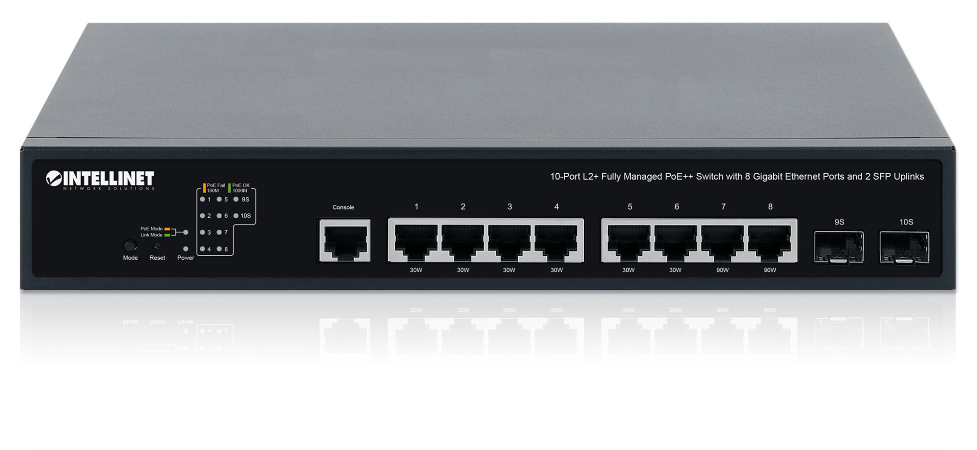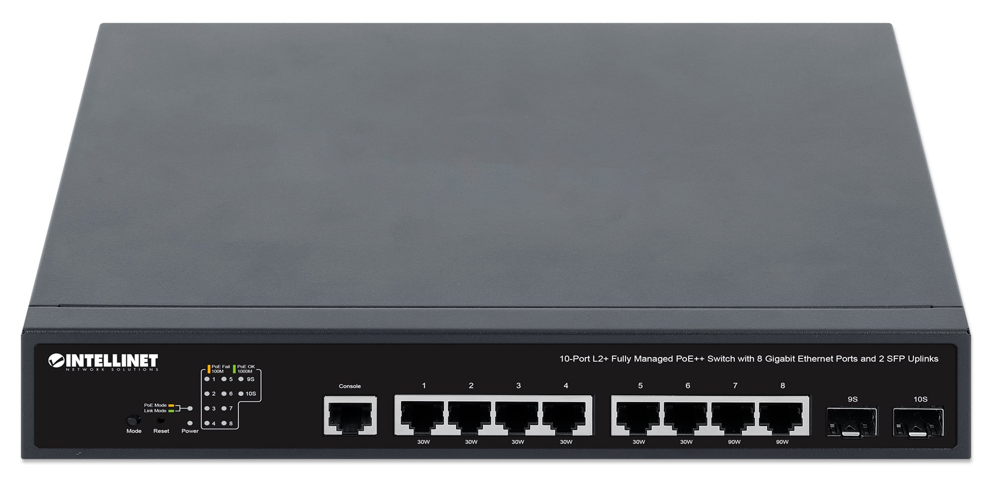 Switch PoE++ 10 porte L2 Fully Managed con 8 porte Ethernet Gigabit e 2 SFP Uplink