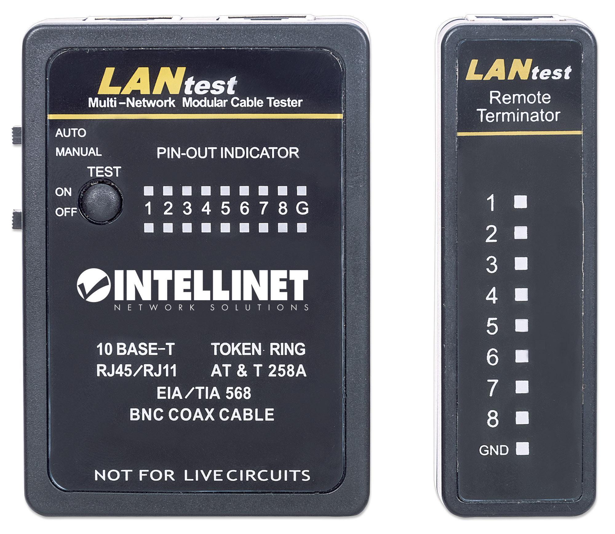 - Questo tester verifica i cablaggi 10Base-2, 10Base-T, 100Base-TX, RJ45 e RJ11 modulare e Token Ring