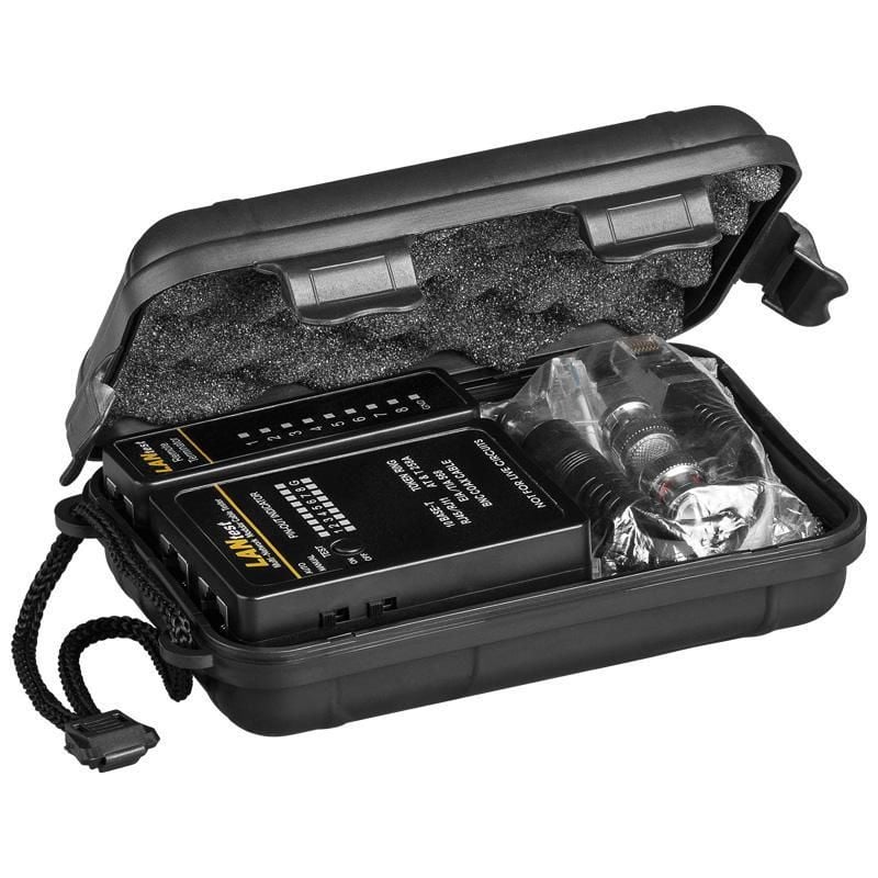 Tester professionale di reteVerifica cavi: RJ45, RJ11 (Utp/Stp) e BNCComp. EIA/TIA356A, EIA/TIA568 A/B, AT&T 258A e Token RingEsamina: continuità, inversioni, circuiti apertiAlimentazione: Batteria 9V DC 6LR61 (non inclusa)Include: custodia protettiva, 2 x cavo adattatore BNC / RJ45, 1 x cavo di rete RJ45, 1 x adattatore BNC maschio / maschio, 2 x adattatore RJ45 / RJ11Dimensioni: 200 x 110 x 45 mm; Colore: nero
