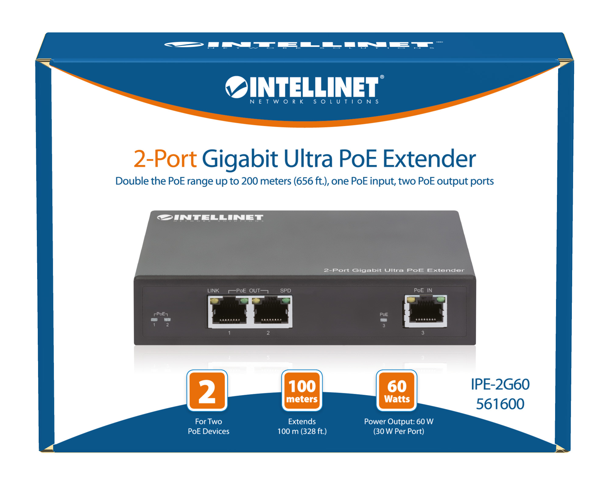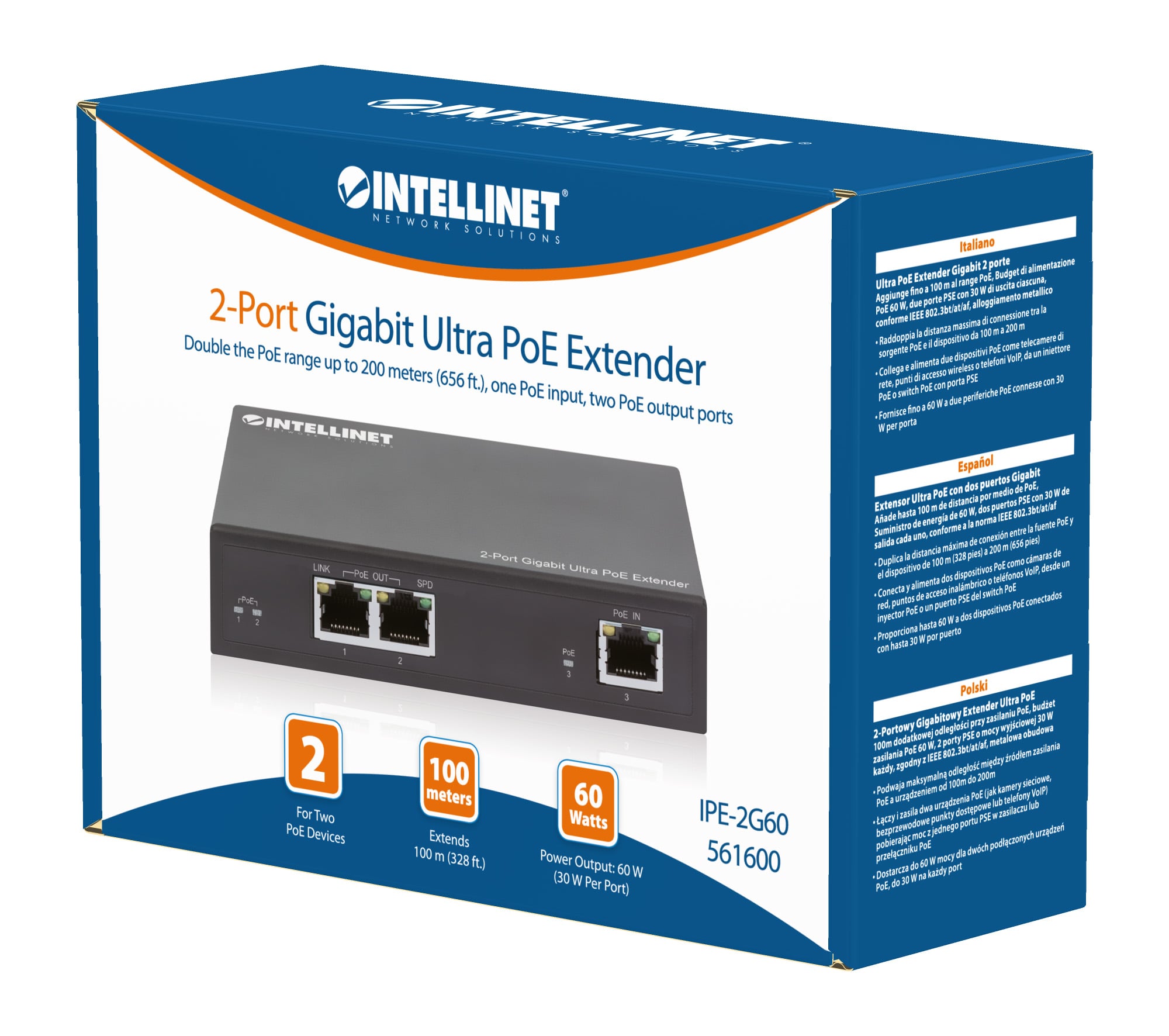 Raddoppia la distanza massima di connessione tra la sorgente PoE e il dispositivo da 100 m a 200 m Collega e alimenta due dispositivi PoE come telecamere di rete, punti di accesso wireless o telefoni VoIP, da un iniettore PoE o switch PoE con porta PSEFornisce fino a 60 W a due periferiche PoE connesse con 30 W per portaSupporta trasferimento dati a 10/100/1000 MbpsBudged totale di potenza PoE di 60 watt Protezione da sovraccarico, sovracorrente e alta tensione Compatibile con iniettori PoE e switch PoE (PSE) conformi IEEE 802.3bt/at/afCompatibile con periferiche alimentate (PD) conformi IEEE 802.3at/afFunzionale come uno switch Gigabit 3 porte alimentato PoE con PoE passante Involucro compatto in metalloDimensioni: 130 x 86 x 29 mm