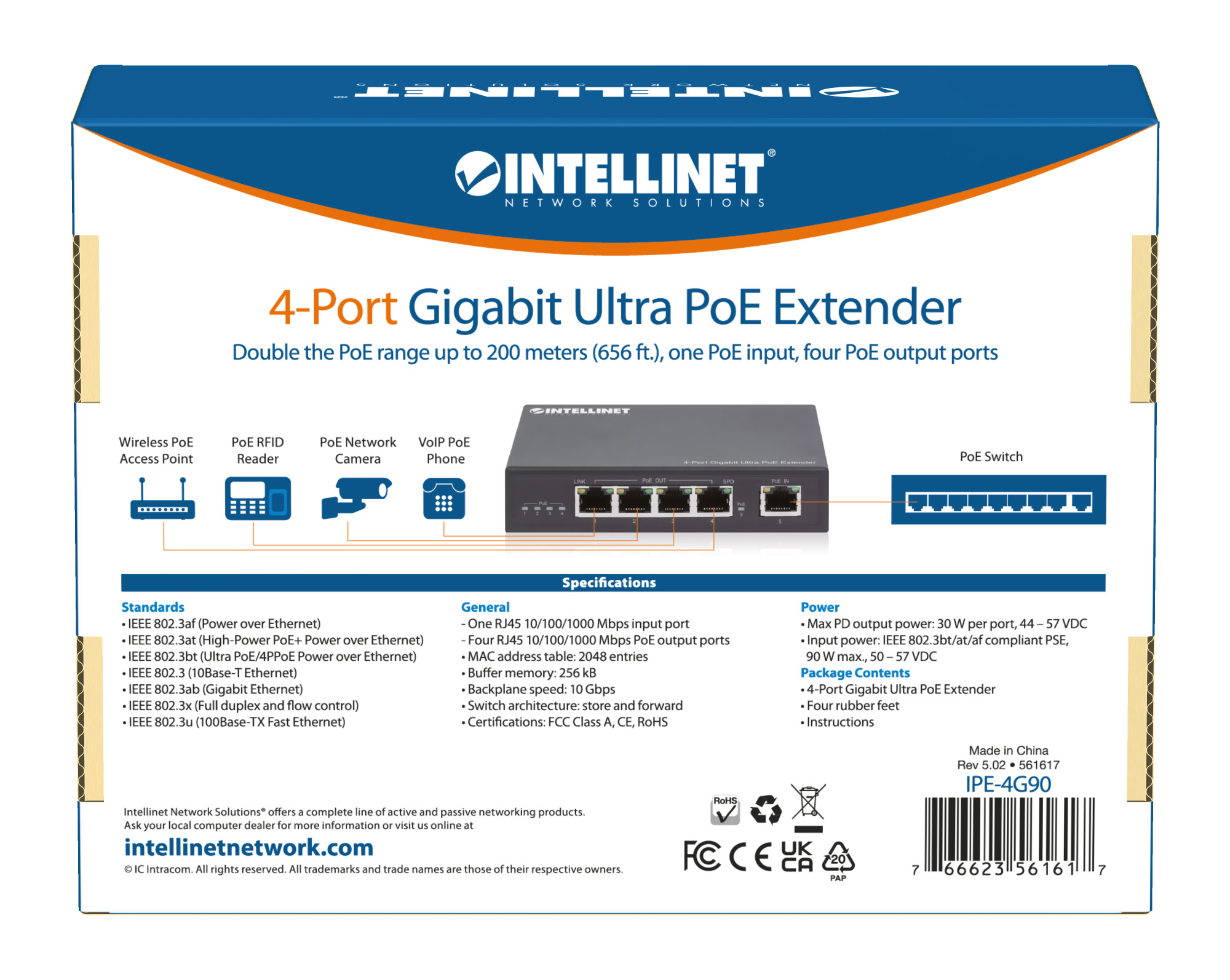 - Raddoppia la distanza massima di connessione tra la sorgente PoE e il dispositivo da 100 m a 200 m